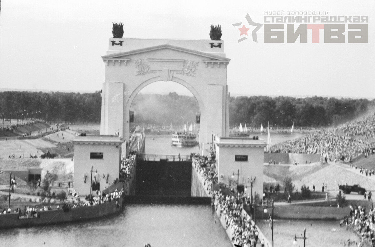 Над входом в канал взметнулась 40-метровая триумфальная арка с двумя надписями: со стороны Волги – «Слава великому Ленину», а со стороны Дона – «Слава советскому народу – строителю коммунизма».
