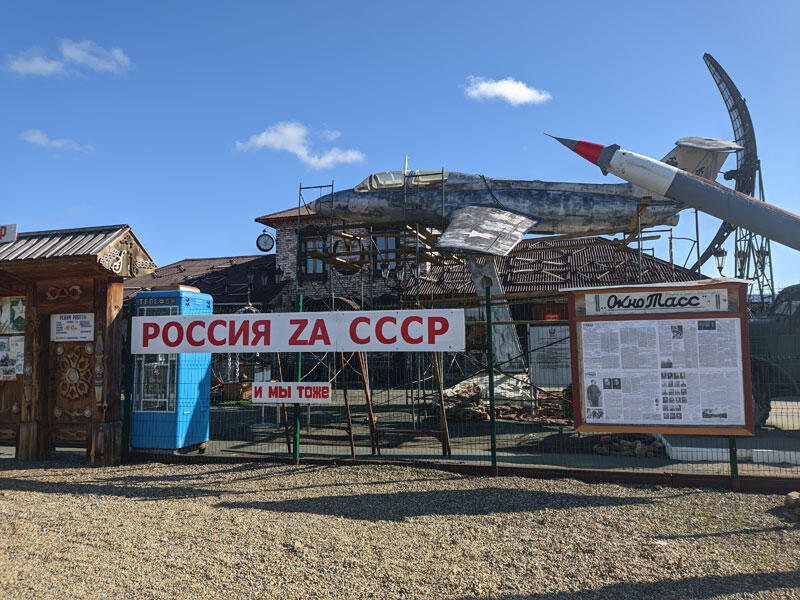 Входим в ворота. Удивление растет. Дозорная башня, зенитная установка, самолет… Оказывается, недалеко от деревни (ближе к Косулино) 1 мая 1960 года был сбит самолет американского разведчика Гэри Пауэрса. Местные старожилы до сих пор в красках рассказывают, как тащили несчастного Пауэрса в колхозное правление, сопровождая каждый его шаг тумаками. Всего избитого, в крови, начальство посадило его в «Москвич» и отправило в Свердловск. А «Москвич», как молчаливый свидетель тех событий, стал отличным трофеем музея.