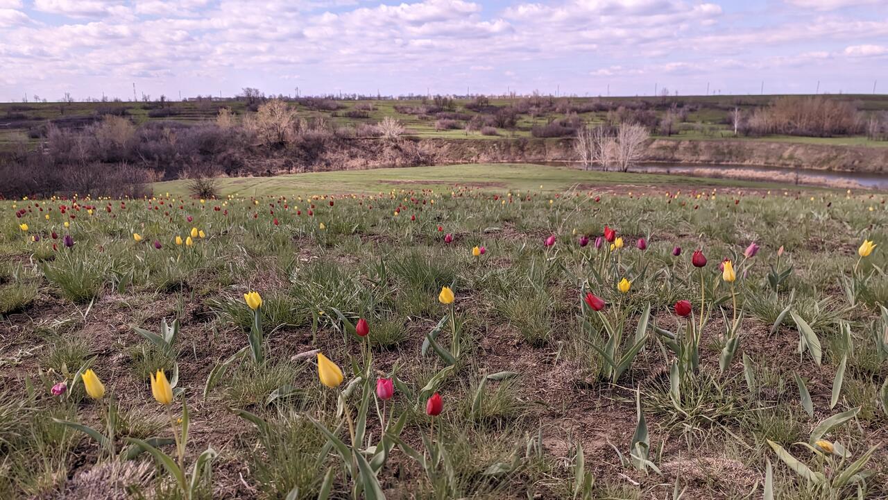 В Саратовской области есть несколько полей степных тюльпанов. Одно из них – недалеко от посёлка Степное, в долине реки Мечетка. Поле так и называется - «Тюльпанная степь в долине реки Мечетка». И совсем недавно, в 2021 году, этому полю присвоили статус особо охраняемой природной территории. Площадь ООПТ – 721 гектар.