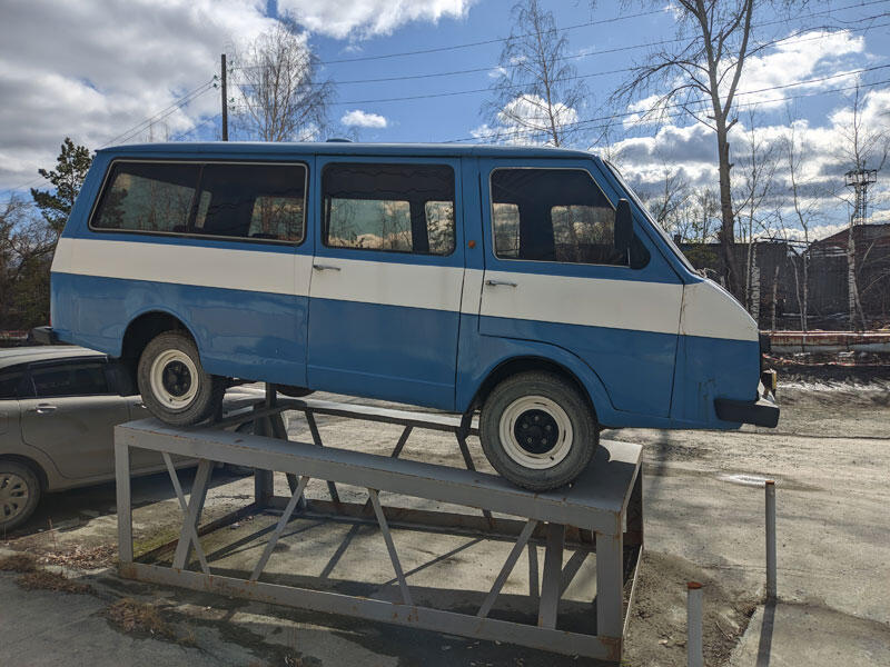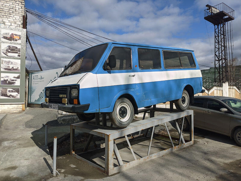 Необычные памятники из обычной техники устанавливает "Ураласбест". Чтобы сохранить образцы для истории. У автоколонны № 2 на улице Серова установлен РАФ-2203.