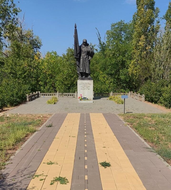 - В центре парка посёлка Приморск Волгоградской области на могиле П.А. Семёнова установлен памятник — фигура танкиста со знаменем в руке.