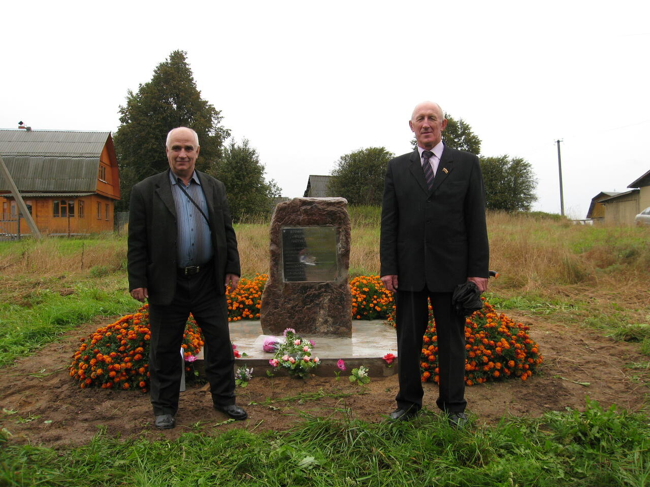 Краеведы-любители бывшие ученики Тумановской школы мой отец, Семенов Владимир Александрович и его друг Елисеев Владислав, при поддержке руководителя Вяземского машзавода Антонова Александра Николаевича, организовали в 2011 г. установку памятного камня в честь двух их них.