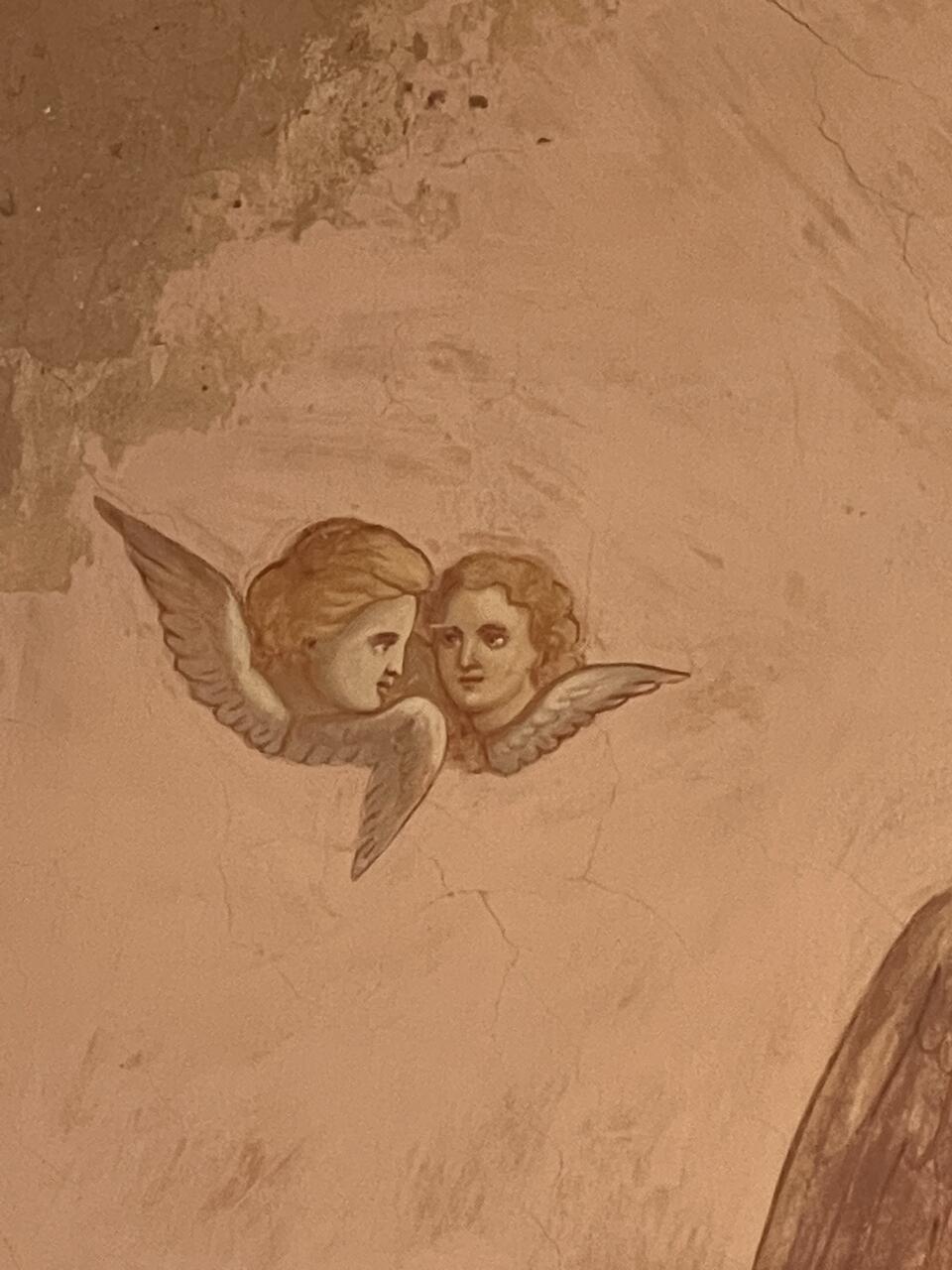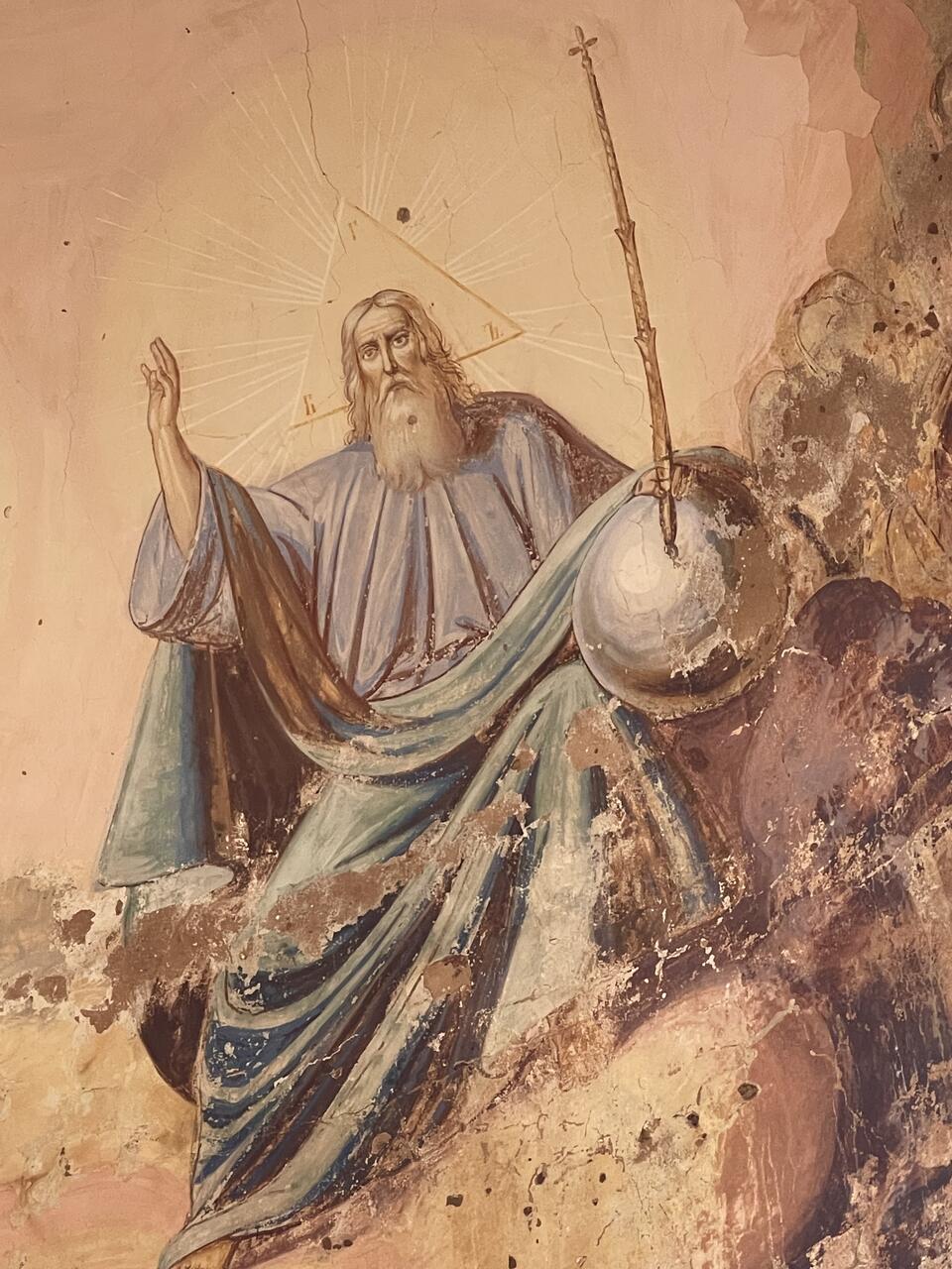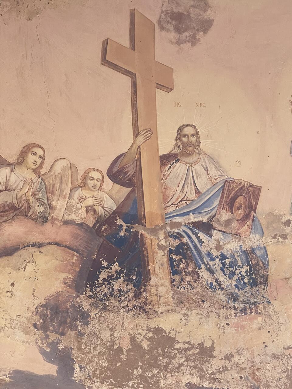 По прекрасно сохранившейся живописи в апсиде можно составить представление об уровне мастеров. Здесь помещена "Новозаветная Троица".
