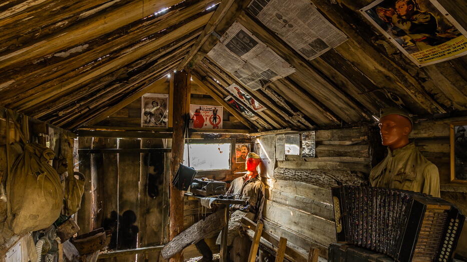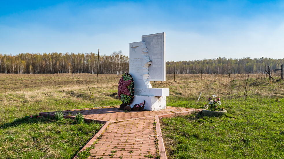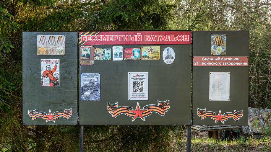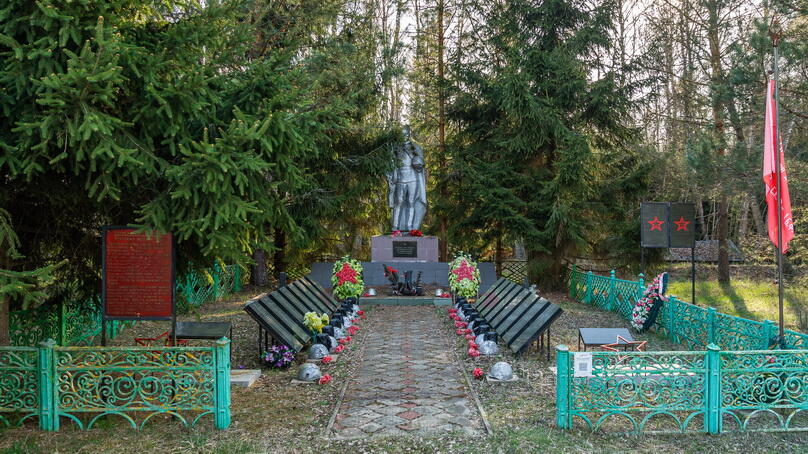 Итак, начнём мы с памятного знака "Рубеж воинской доблести". Он расположен по координатам в заголовке, у перекрёстка дорог. Отсюда удобно доехать до всех шести населённых пунктов, которые удостоены почётного звания. Мемориалов и памятников в окрестных сёлах множество, точно больше упомянутых в статье 18-ти. Координаты всех давать не будем, так как сами все не объехали, поэтому наверняка что-нибудь важное забудем или будут ошибки в координатах. Оставим на будущее. Вместо этого предлагаю прокатиться через лес до посёлка Красный, путь в который пролегает через Поляны и Нижние Ростоки. Чуть не доезжая, есть две братские могилы, 21 и 22. Рядом с 21-ой есть небольшой музей со свободным доступом, мы такого больше нигде не видели. Видимо, из-за удалённости от главных транспортных артерий посетителей здесь бывает немного, поэтому получилось организовать такой формат. Очень интересное и атмосферное место. В сырую погоду без полного привода добраться до Красного будет сложновато.