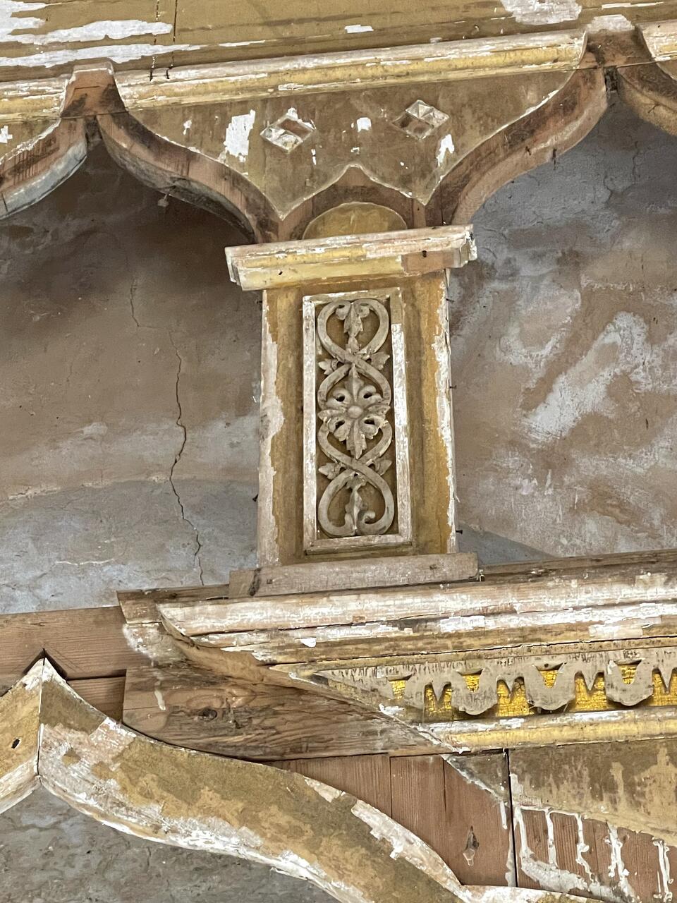 В интерьере четверик храма имеет срезанные углы. Деревянное перекрытие имитирует сомкнутый свод с узкими диагональными гранями. В остальных помещениях плоские потолки.