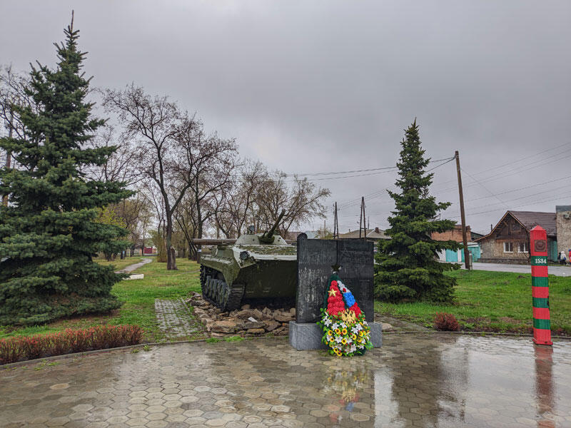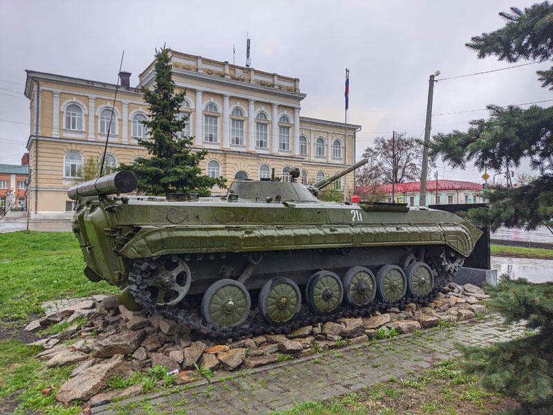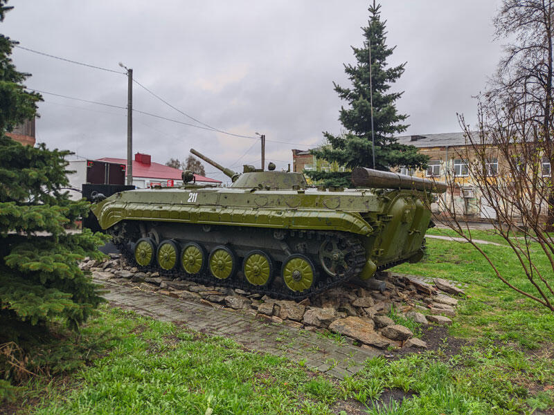 Памятник установлен у здания городской администрации. На постаменте стоит БМП-1, перед ним мемориальная плита из двух половин со звездой посередине.