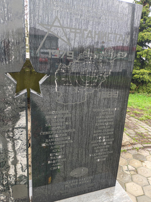 На плите выбиты слова «Воинам-интернационалистам достойным сынам Отечества посвящается» и перечень государств и районов где камышловцы принимали участие в локальных войнах.