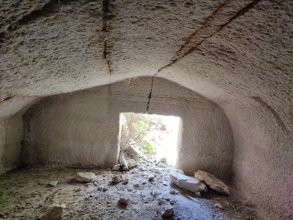 Это камерное помещение, примерно 5–6 метра в глубину, вырубленное в скале.