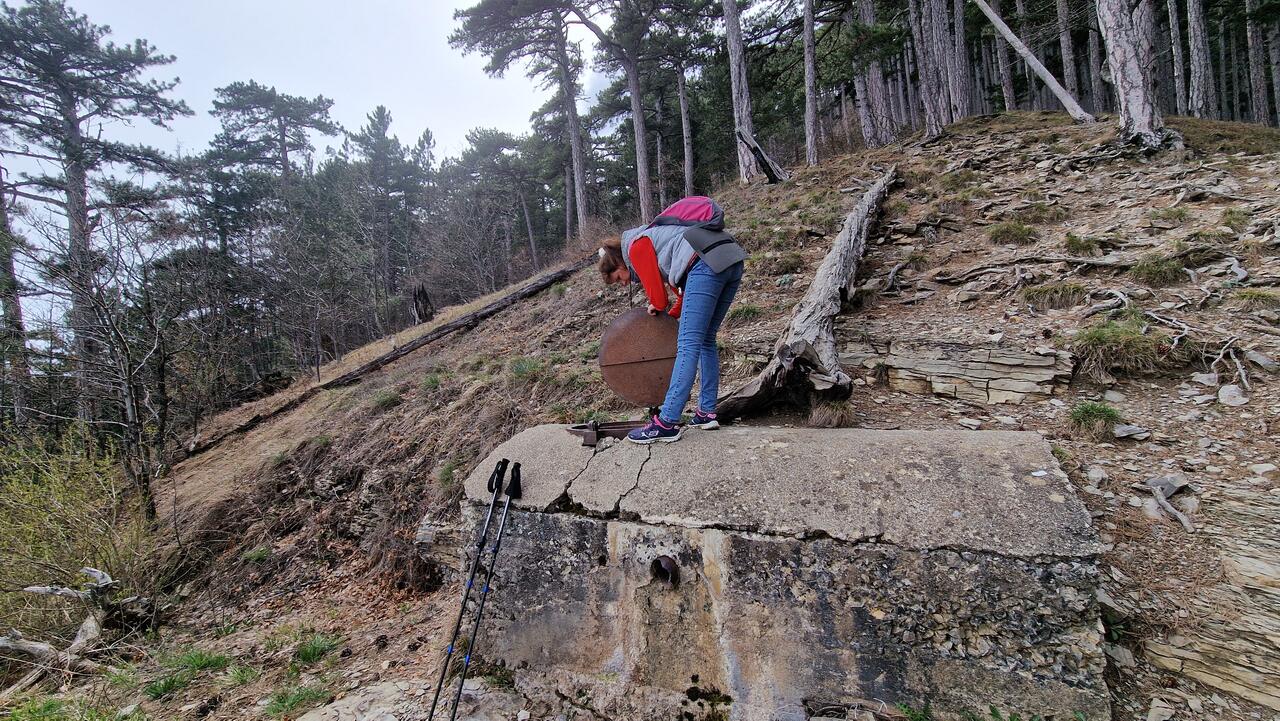 Каптаж можно осмотреть не только снаружи, но, если уровень воды будет низким, можно изучить и изнутри. Наружная дверь не заперта. Чтобы открыть внутреннюю дверь, необходимо приложить небольшое усилие. Нам, девочкам, удалось открыть обе двери и заглянуть во внутрь. Уровень воды был достаточно высок, поэтому мы остановились на осмотре каптажа только снаружи. Возможно летом будет меньше воды.