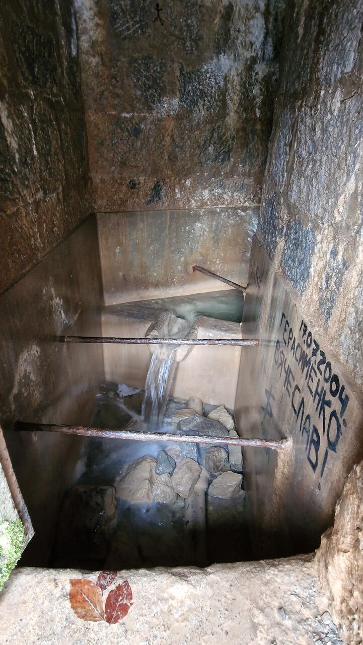 Исток Учан-Су - интересное гидротехническое сооружение весьма почтенного возраста - каптаж 1904 года постройки.