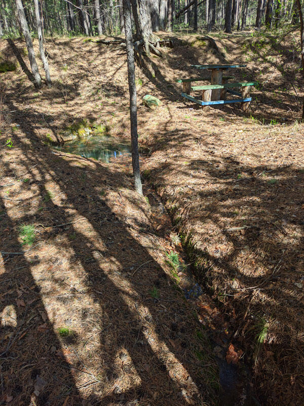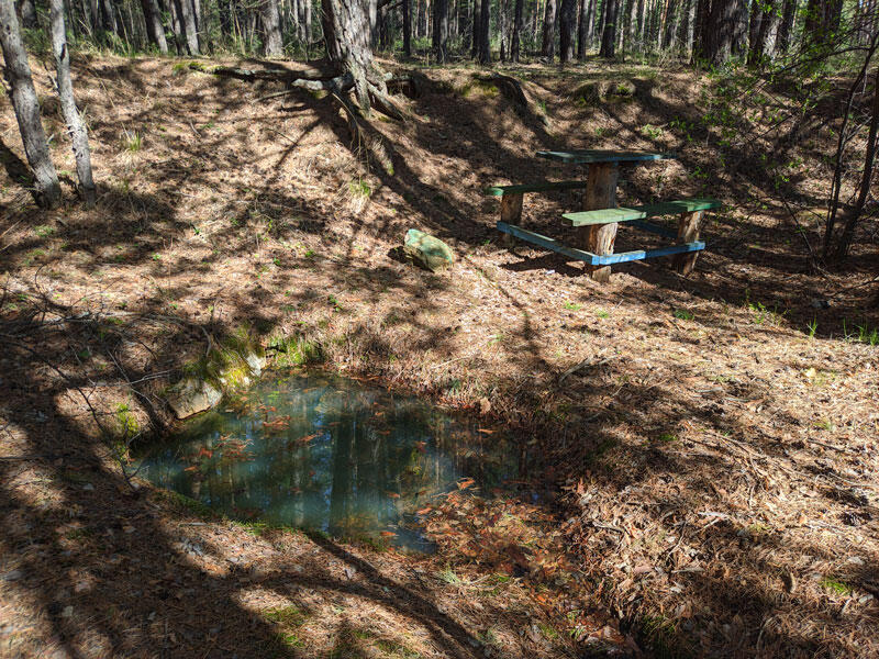 Рядом с родником установлены столик и скамейки, предназначенные для отдыха проезжающих.