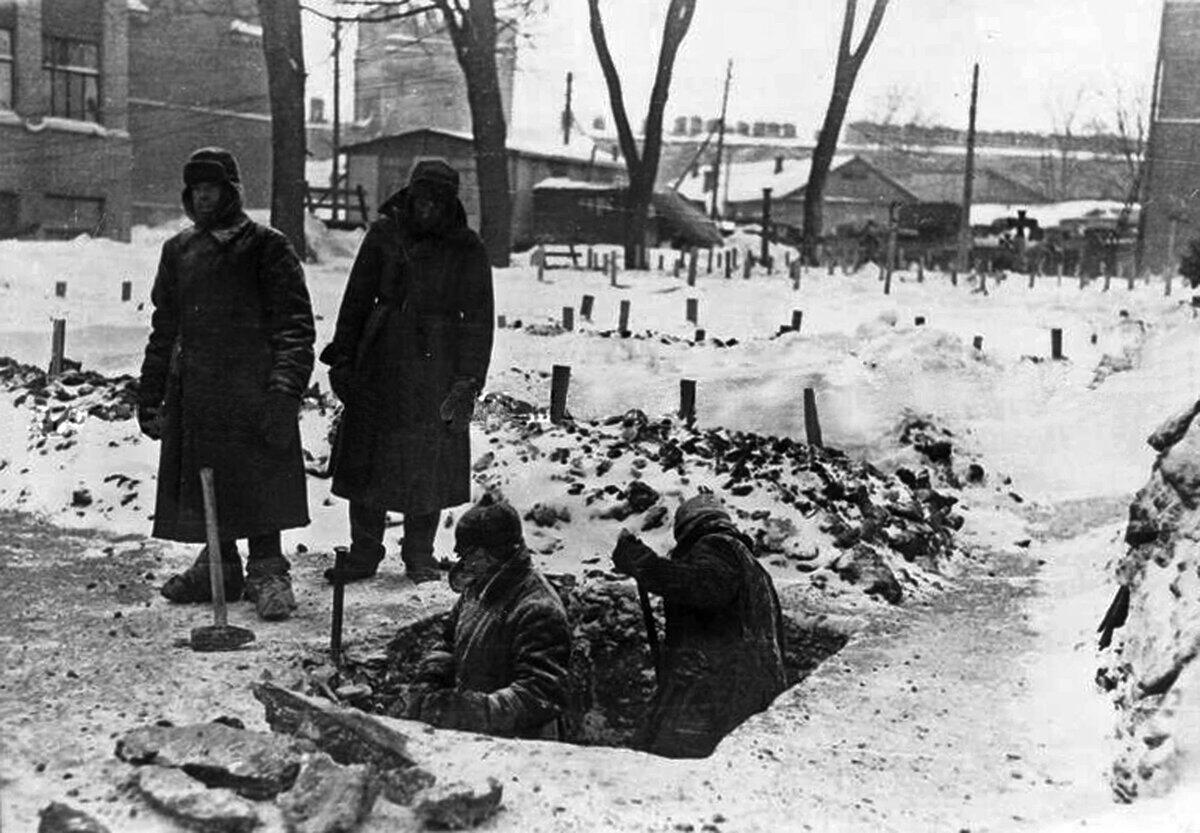 Но погибших было так много, что кладбище лазарета всех не вмещало. Из воспоминаний военного врача Мстислава Ивановича Яковенко, находившегося и работавшего врачом в данном лазарете: «Зимой довольно остро стоял вопрос с похоронами умерших. Земля была сверху мерзлая и с трудом откалывалась ломом, отходили только небольшие кусочки. Лопата не брала. Промерзлость в среднем доходила до метра. Теми силами, которые выделялись на это, – человек 40 могильщиков, достаточно истощенных и поэтому малотрудоспособных, – вырыть общую могилу для 50-60 человек ежедневно умиравших было невозможно. Хоронили в старых окопах, вырытых еще летом, но скоро ближайшие окопы были целиком использованы. Немцы, боясь вспышки эпидемии, дали приказ, чтобы над трупами был слой земли около полутора метров. Это еще более увеличивало трудности. Тогда немцы приказали хоронить на старом, недалеко расположенном кладбище. (Видимо речь идет о Братском кладбище). Здесь сверху была трава, промерзлость была значительно меньше, и земля была рыхлая. Ранее погребенные мертвецы извлекались и вновь погребались в братских могилах с красноармейцами.»