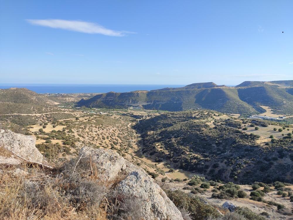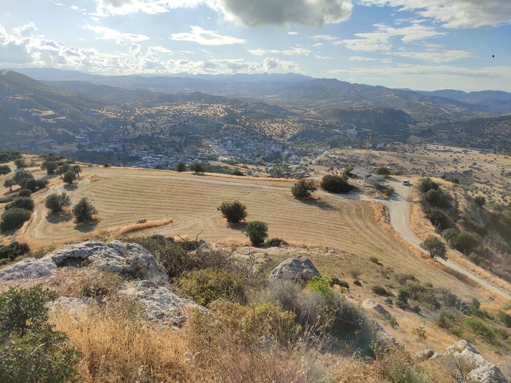 В хорошую погоду отсюда видно сразу несколько районов — от Лефкары до побережья, с гористыми силуэтами на фоне. Это не просто точка для обзора, а задуманный уголок для отдыха: рядом установлены скамейки, всё окружено зеленью, а атмосфера — очень умиротворённая. Место популярно у тех, кто ищет живописные, но не туристически многолюдные локации.