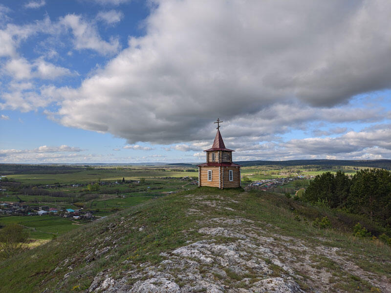 Издалека можно увидеть на самой вершине горы деревянную часовню, освященную в честь святых Петра и Павла.