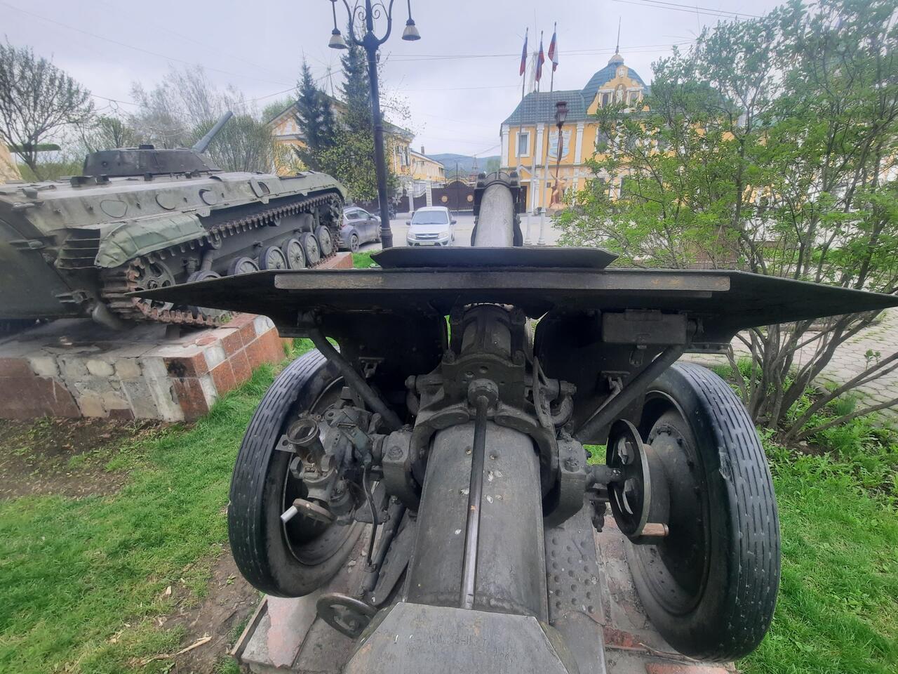 Рядом с памятником Тёркину установлена военная техника. На постаментах из красного гранита возвышаются образцы военной бронетехники. Здесь можно увидеть боевую машину БМП-1 и три пушки. Экспонаты относятся к годам Второй Мировой войны.