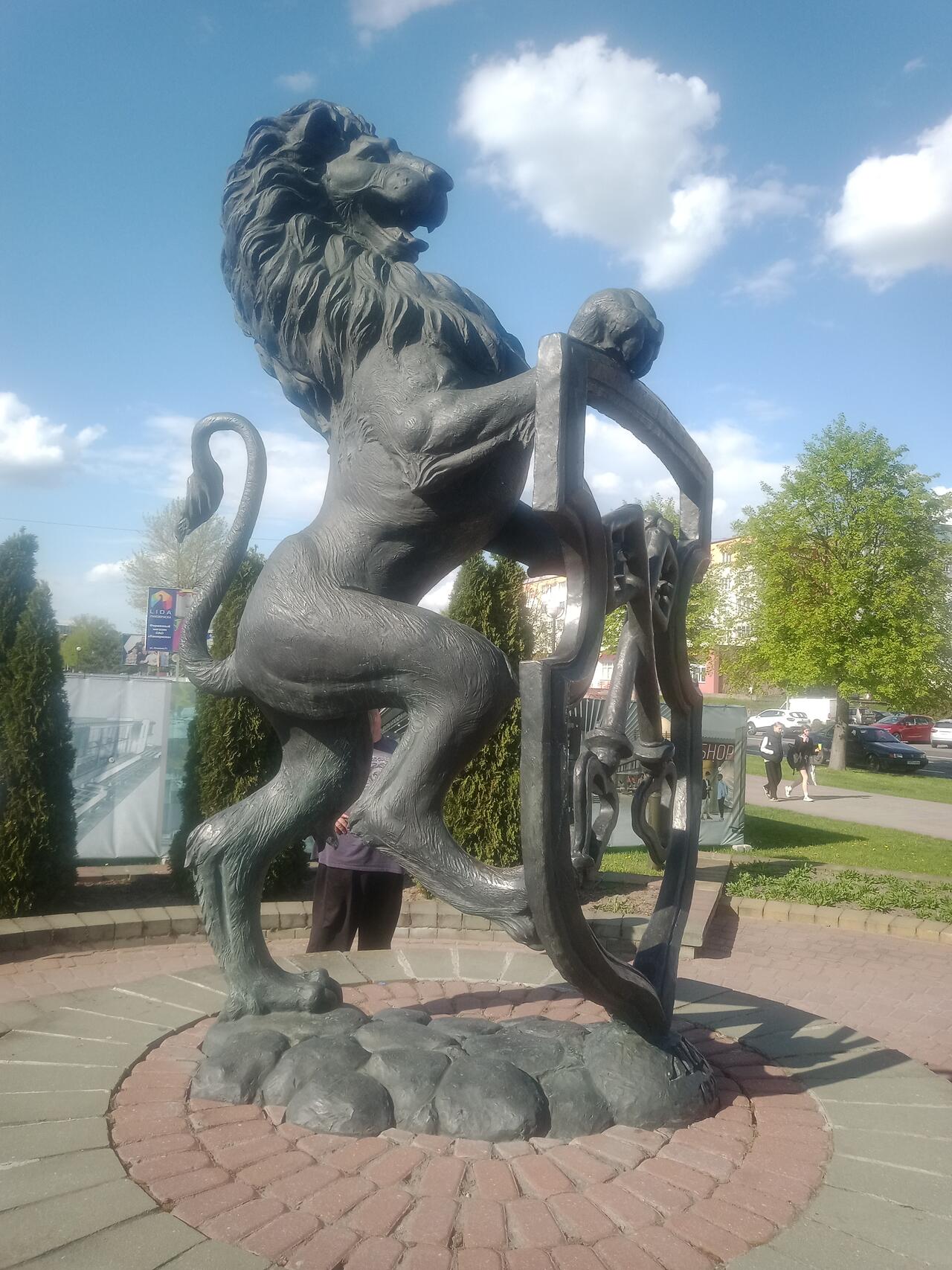 30 мая 2002 года был зарегистрирован современный герб города. Он представляет собой барочный щит, рассечённый «в столб». В правом поле красного цвета расположен стоящий золотой лев, который повёрнут вправо, в левом голубом — два перекрещённых золотых ключа.