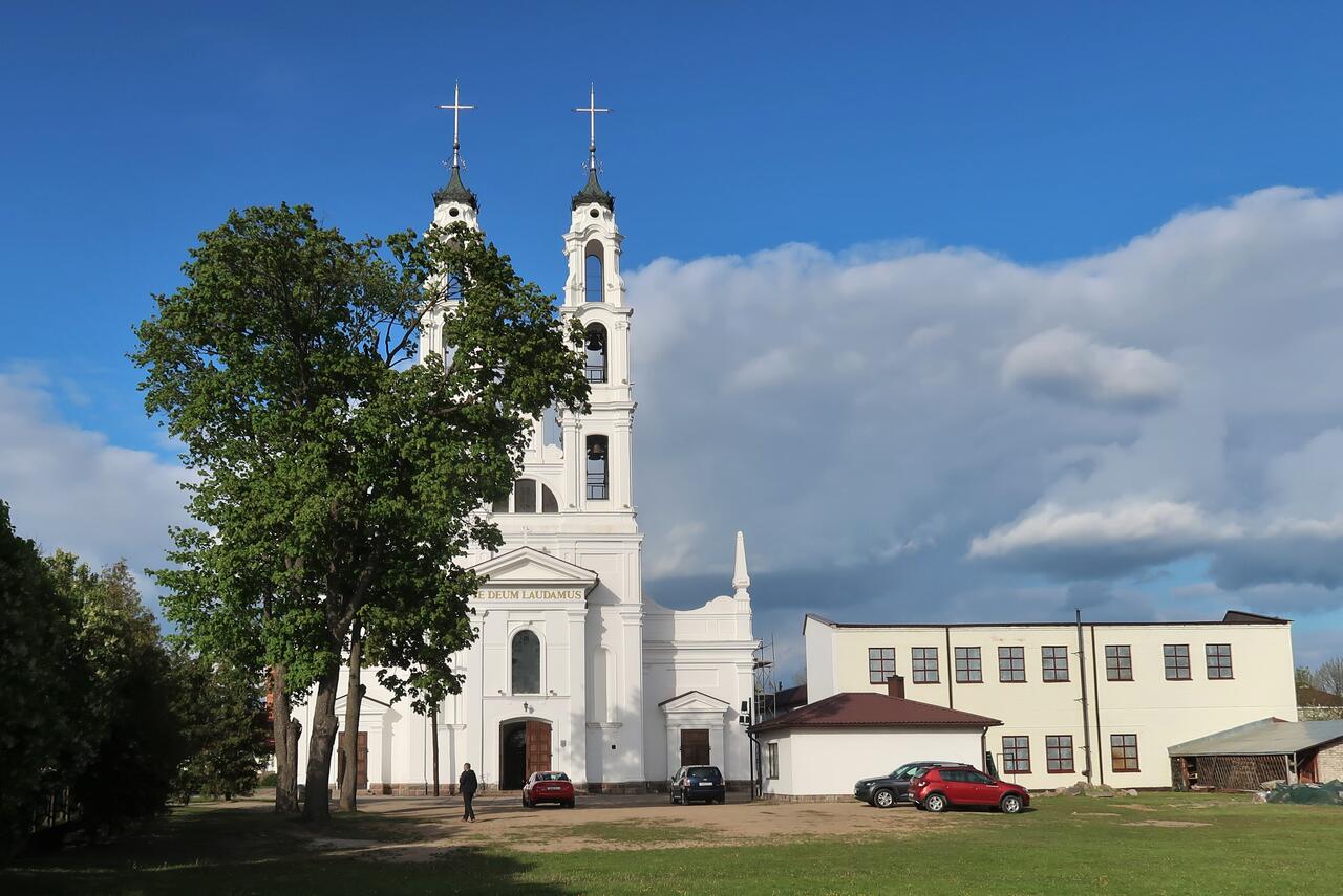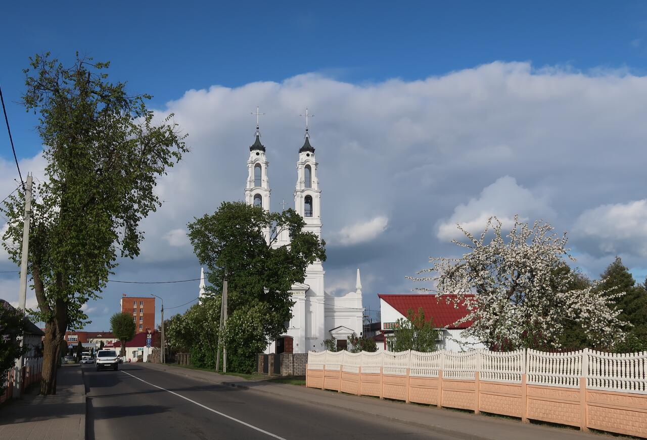 Этот красивый ослепительно белый католический храм виден отовсюду, какими бы путями вы не подъезжали к Ошмянам!
