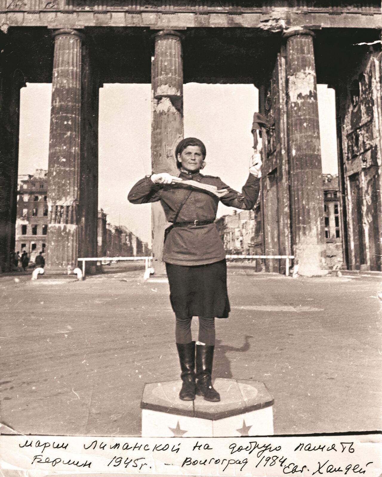 Весной 1945 года известный фотокорреспондент Евгений Халдей сфотографировал ее на посту на площади у Бранденбургских ворот в столице Германии. Снимок был опубликован только в 70-е годы прошлого столетия и стал одним из символов Победы в Великой Отечественной войне. Его героиню журналисты называли «Бранденбургской Мадонной» и «Девушкой - Победой».