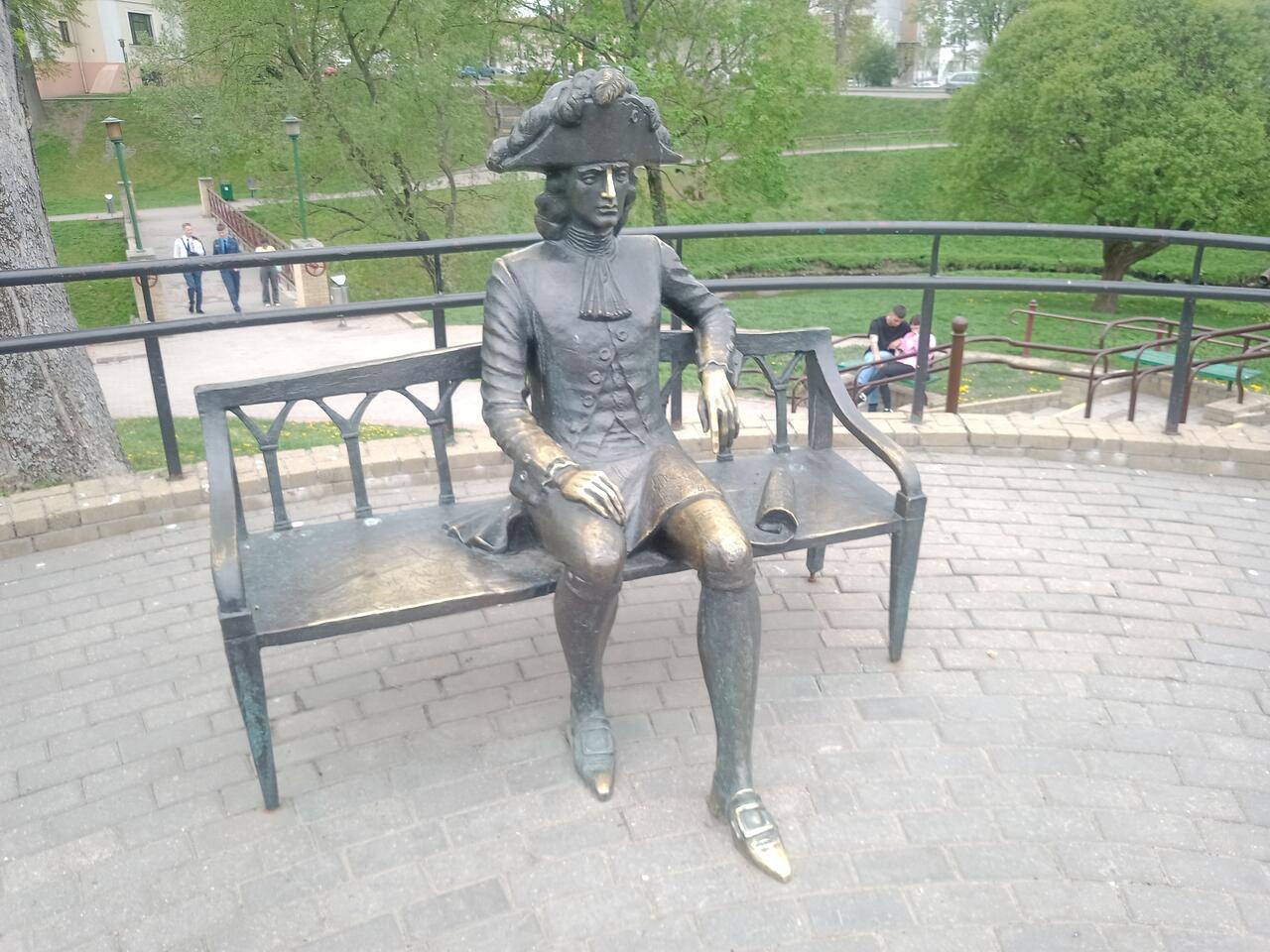 В парке Жилибера на лавочке сидит строгий симпатичный господин в камзоле и треуголке. На коленях лежат архитектурные чертежи Городницы - центрального района Гродно, сложившегося в XVIII-XIX веках.