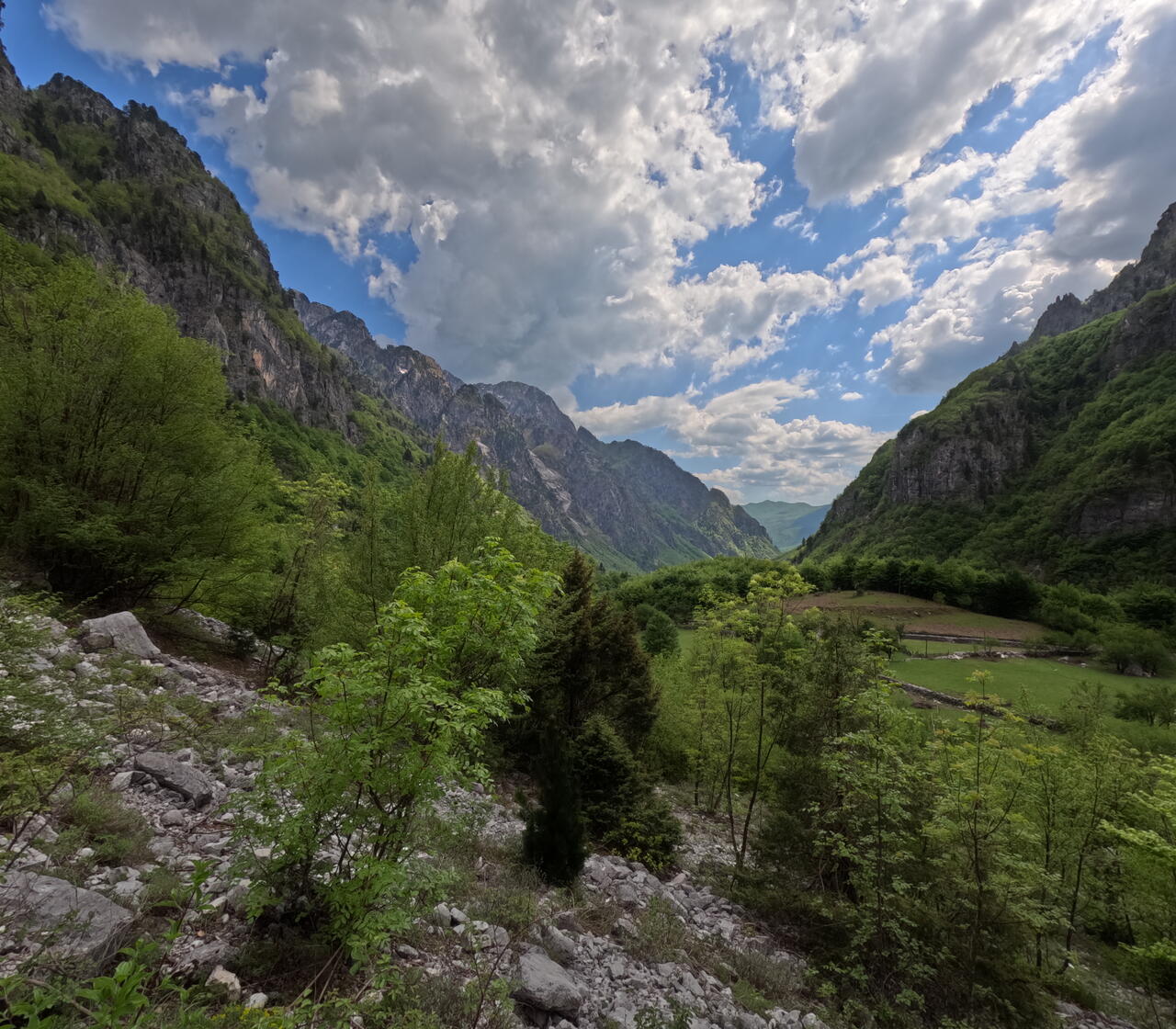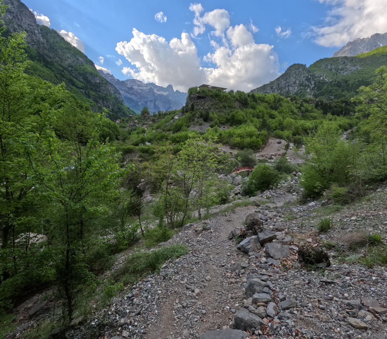 Водопад называется Грунас, также называется и каньон, который образует река Thethit (албанцы произносят и реку, и деревню, и долину, и перевал – Тсесит). О водопаде много не напишешь, поэтому упомяну, что в нац парке Албанские Альпы, есть несколько пешеходных активностей. Во-первых, две радиальные тропы до этого тайника и до голубого глаза. Во-вторых, кольцевой маршрут, связывающий эти две достопримечательности и проходящий вдоль реки Theth и по каньону Грунас. А в-третьих, самый сложный маршрут – это через перевал в Долину Вальбоны. Это примерно 10 километров с набором высоты 900 и последующим сниженим 1100 метров. Такой переход занимает весь световой день только в один конец.