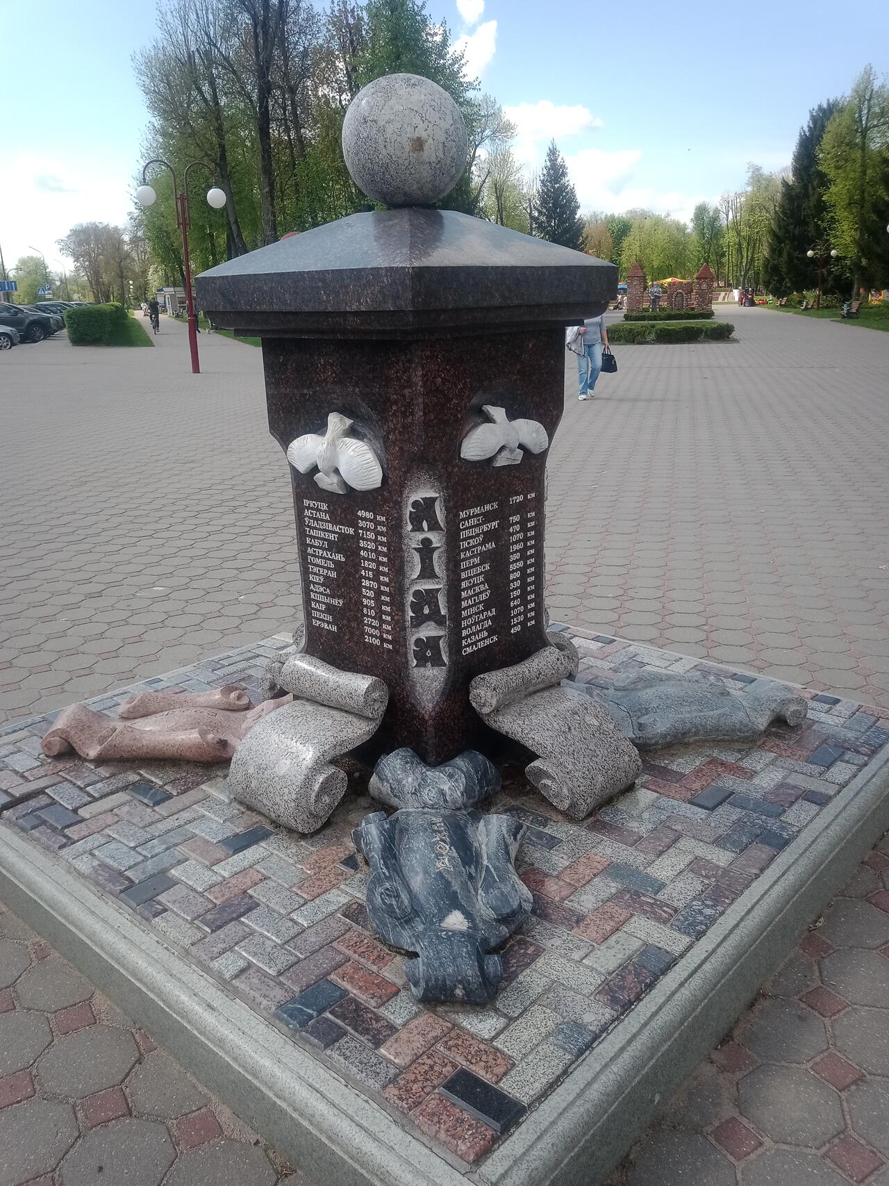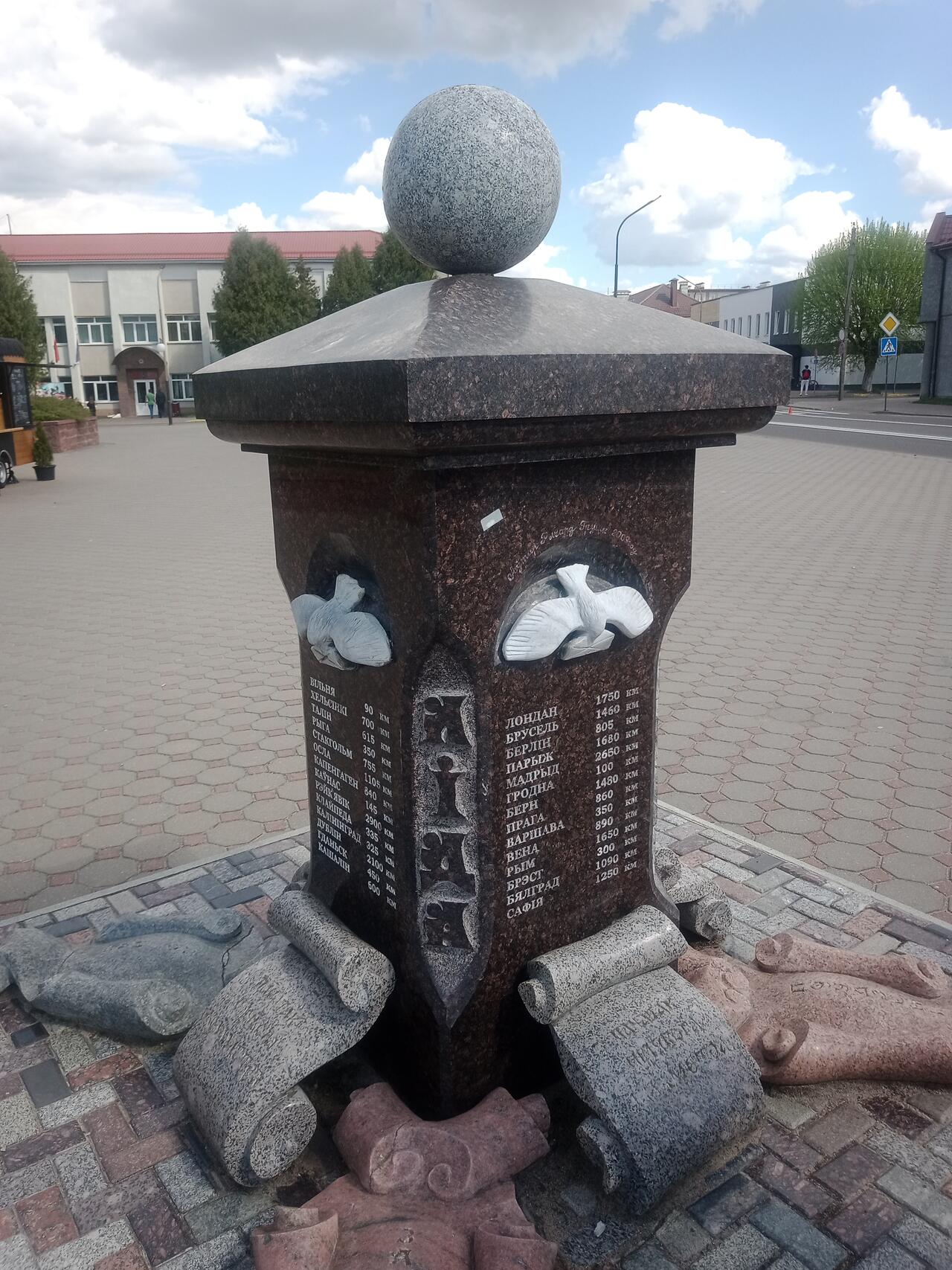 «Нулевой километр» в Лиде — символическая скульптура, которая символизирует начало пути и указывает расстояние до других крупных городов.