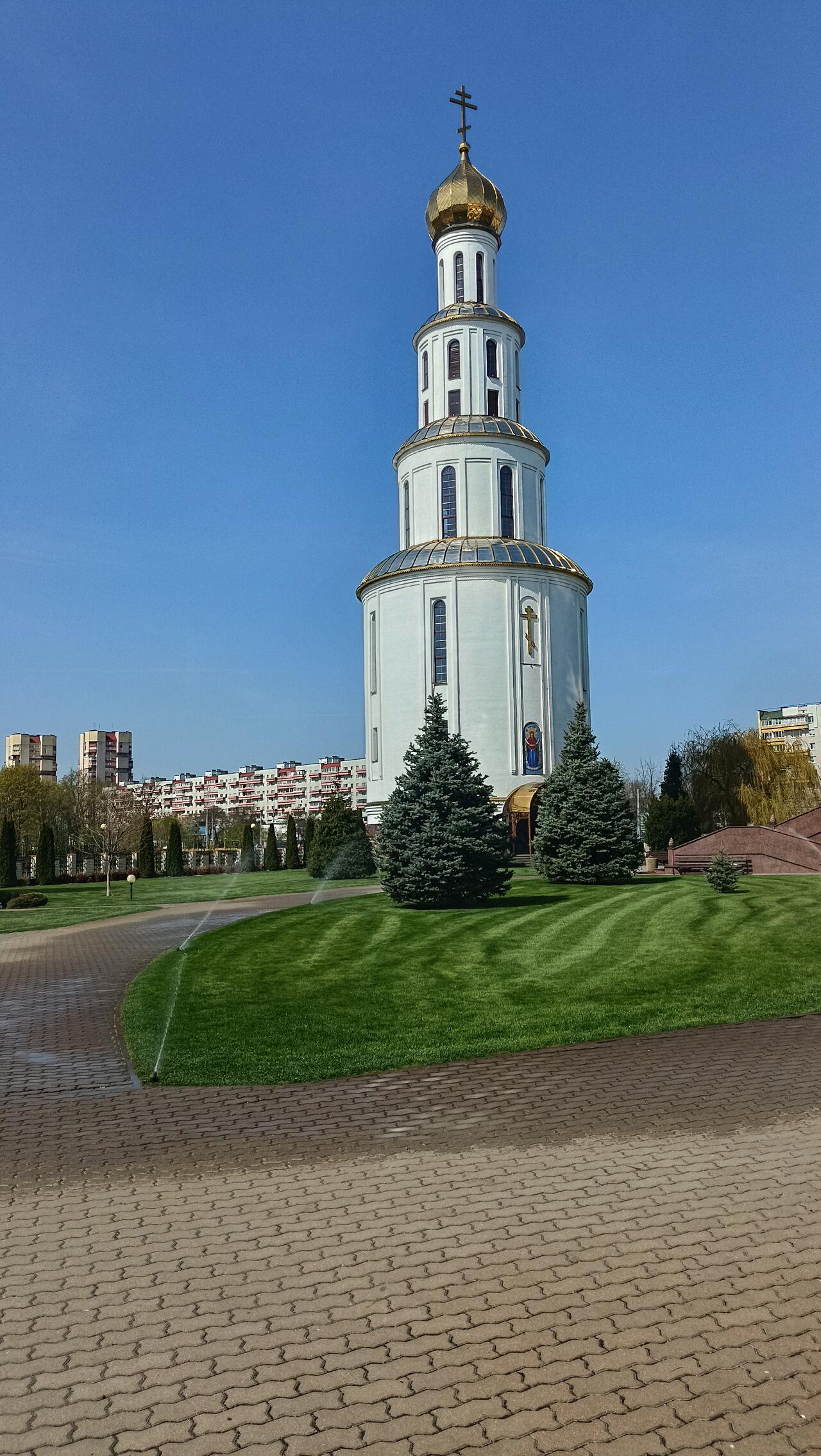 Храм образует единый комплекс с построенной неподалеку колокольней-брамой. Поражающее своим величием сооружение является своеобразными восточными воротами Бреста.