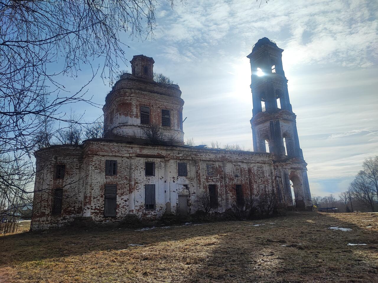 Во 2-й половине того же столетия – предположительно в 1860-е – 1870-е гг. – к юго-западу от храма, у дороги, проходящей по южной границе площади, была построена небольшая часовня. В кон 19 в. приходское кладбище было перенесено за приделы села, и в 1897 г. на средства крестьянина Ивана Малкова там была поставлена еще одна часовня, сложенная из дерева и украшенная резьбой в русском стиле. Вероятно, также в кон. 19 в. севернее церкви построили школу, подчинявшуюся Министерству народного просвещения, а на рубеже 19 – 20 вв. за школой появилась небольшая хозяйственная палатка. К настоящему времени церковная ограда и кладбищенская часовня не сохранились; утрачены кровля и боковые главы церкви, заложен ряд окон, проем южного входа растесан, пространство храма разделено деревянным перекрытием на два этажа, утрачено убранство интерьера; не сохранилась кровля и шпиль колокольни; не уцелело завершение часовни; здание школы полуразрушено. Все здания кирпичные, с фасадами, покрытыми толстым слоем известковой обмазки.
