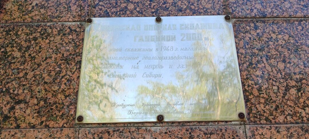 Когда город расширил свои границы и на окраине стали возводить многоэтажные дома, буровую вышку, простоявшую здесь до 60-х годов прошлого столетия, разобрали. А в середине 70-х на её месте был установлен пилон и мемориальная доска. Вокруг разбили небольшой сквер.