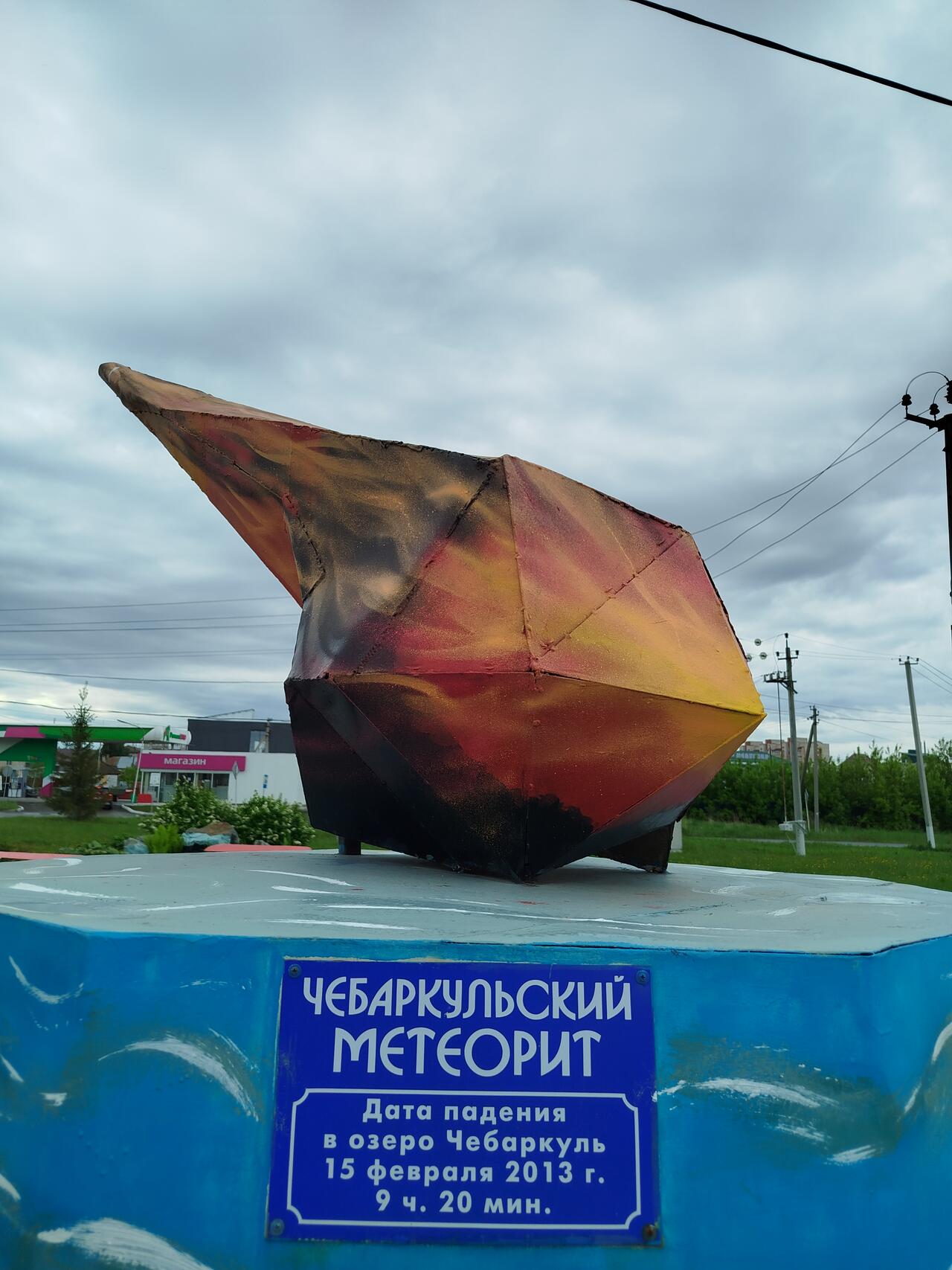В районе железнодорожной станции в Чебаркуле установлен небольшой памятник метеориту. Монумент, мягко говоря, скромный. Даже само космическое тело сделали серого цвета. Исправить ситуацию взялся местный житель Евгений Напалков. Он увлекается художественной росписью. При этом служит спасателем.