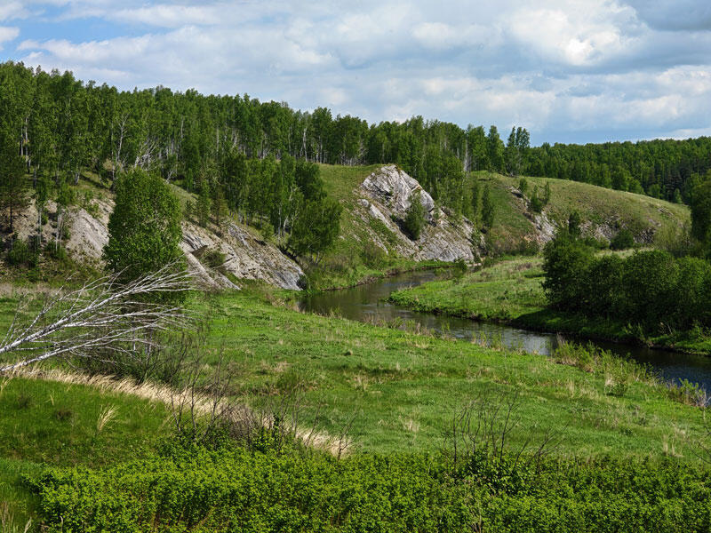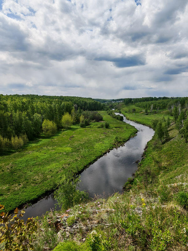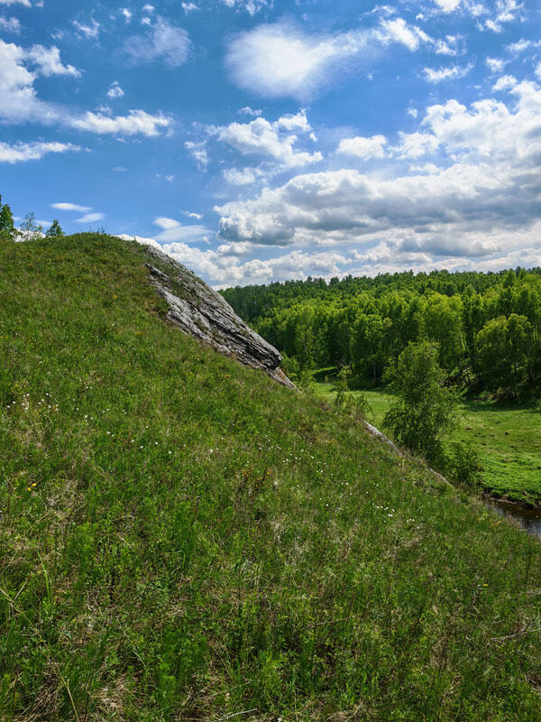 Величественный Колпак, словно страж, возвышается над тихими водами Багаряка, напоминая о древних временах и храня в себе отголоски минувших эпох. Скала, получившая свое название за характерную форму, привлекает путников своей доступностью и захватывающими панорамами. С ее вершины открывается вид на умиротворяющую сельскую местность, где вдали, словно игрушечная, раскинулась деревня Колпаково, а лента реки извивается среди зеленых лугов и лесов.