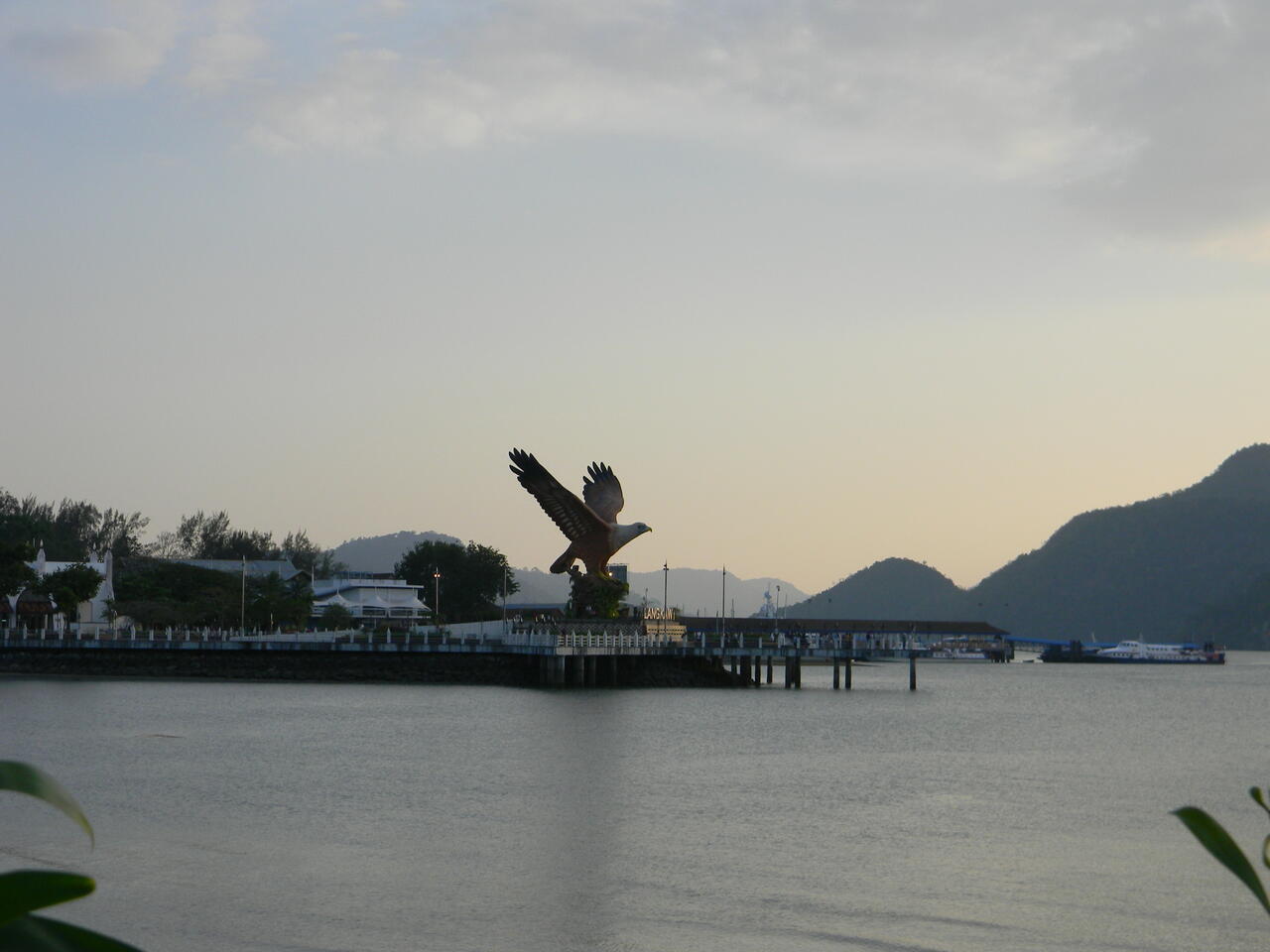 В парке есть главная аллея и много боковых дорожек, искусственные водоемы, часовая башня, а вот людей практически нет, но можно встретить вездесущих обезьянок и варанов. Здесь даже есть пляж и набережная, с которой открывается отличный вид на морской залив с причалом и на главный символ курорта – Орла.