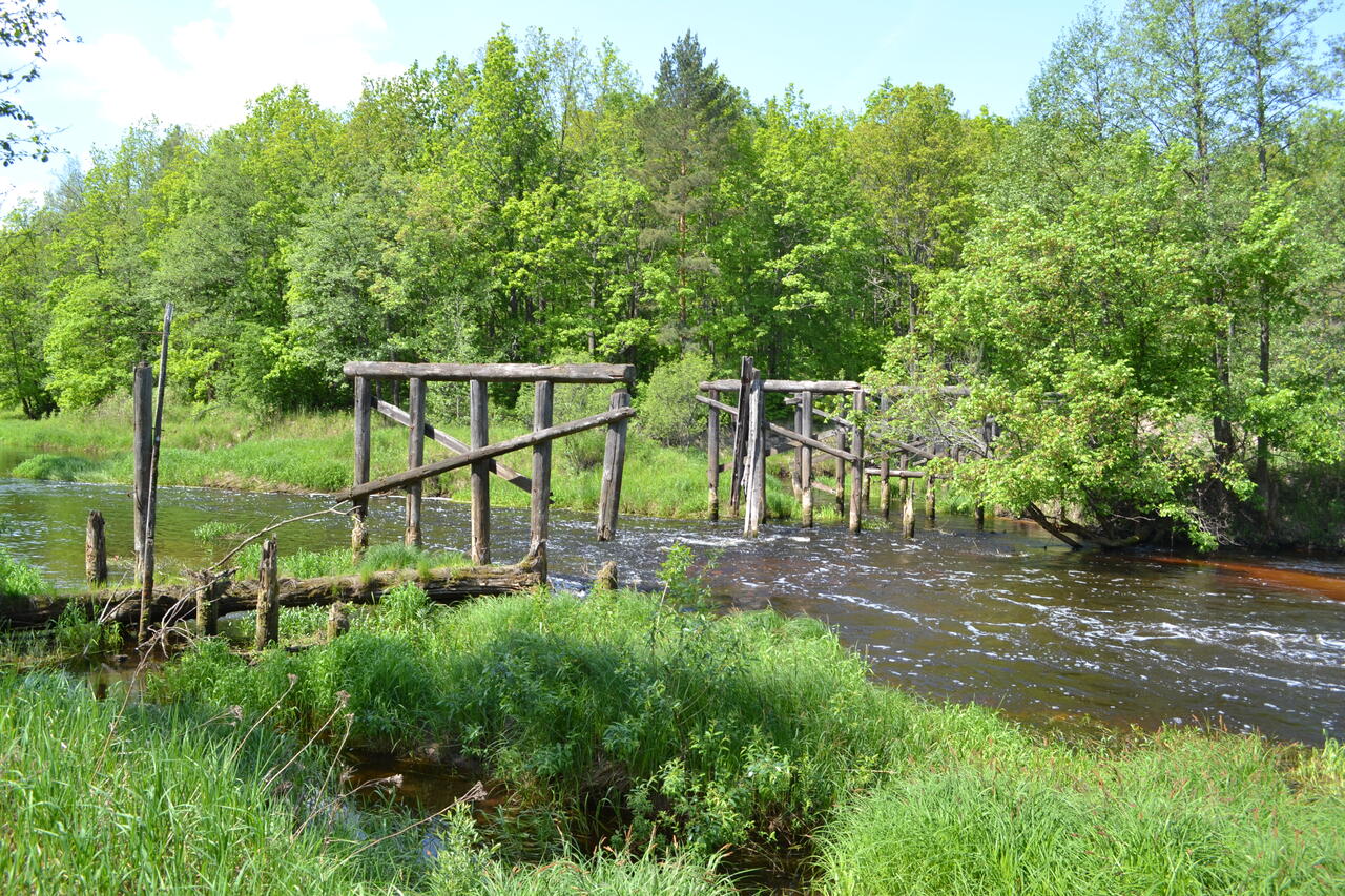 В старину через Серёжу была одна из основных дорог на Павлово. Не зря такой мост отгрохали. По преданию сам Петр 1 посещал эти места, когда подыскивал лес для строительства кораблей. Мост к его приезду и воздвигли. Так это или нет, сейчас узнать не представляется возможным. Вероятно, за свою историю деревянный мост неоднократно ремонтировался и перестраивался. На сегодня сохранившиеся остатки конструкций лишь напоминают о былом величии.