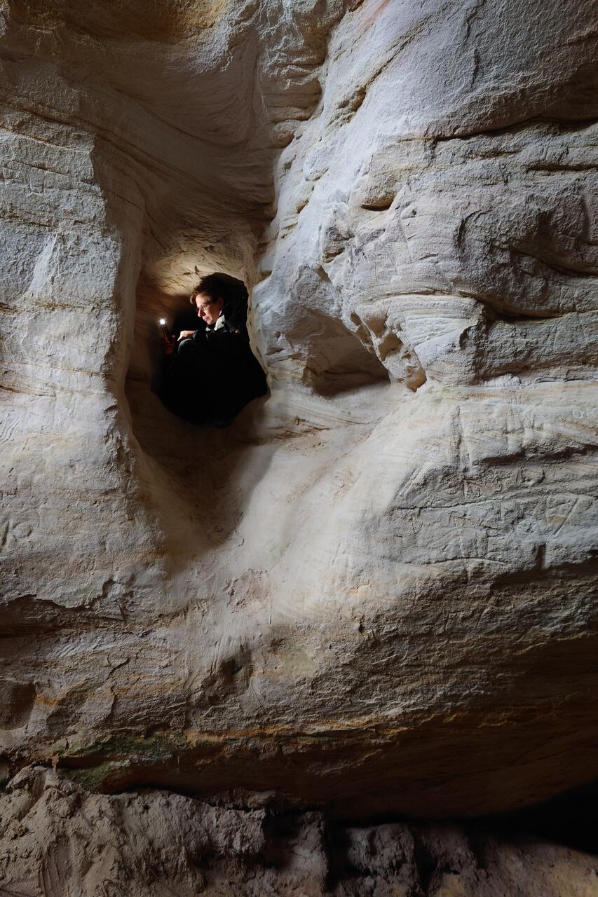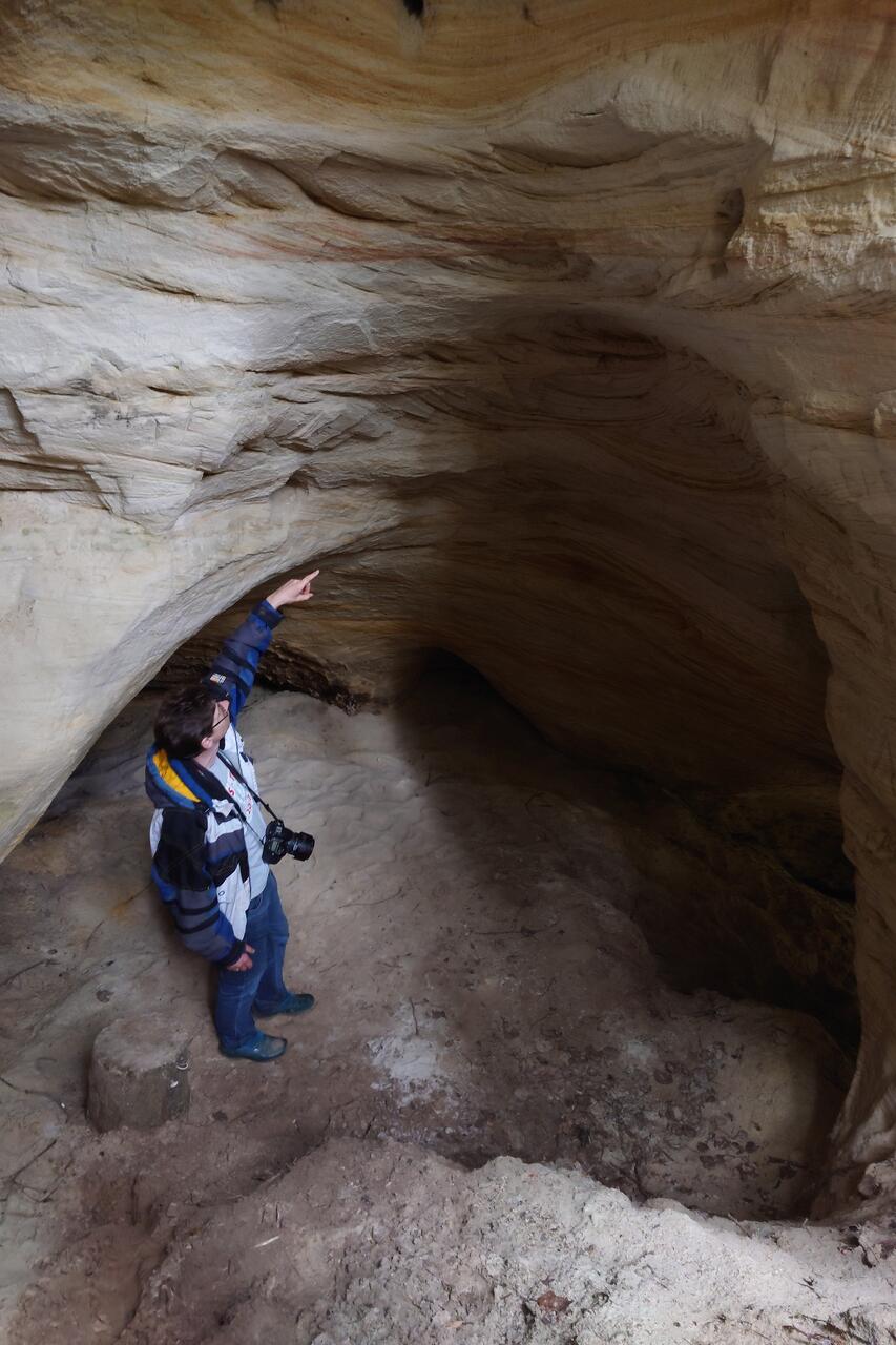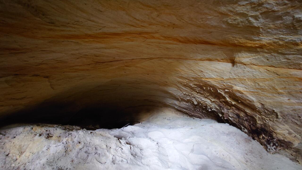 Под отрицательным уклоном песчаной стены в нижней части пещерки есть остатки попыток сделать водопровод 😁
