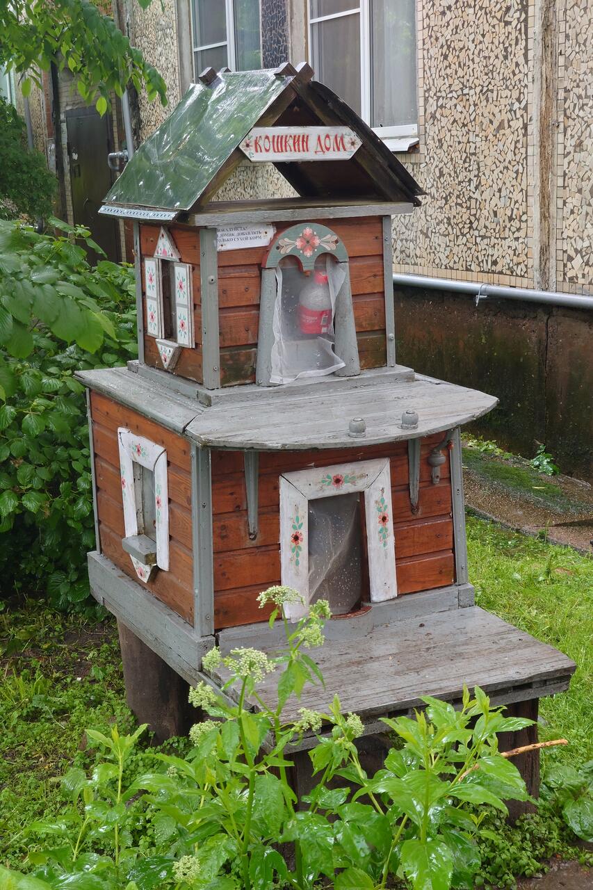 Кошкин дом и кошкина столовая (кстати, сюда можно принести сухой корм для котиков ☝️).