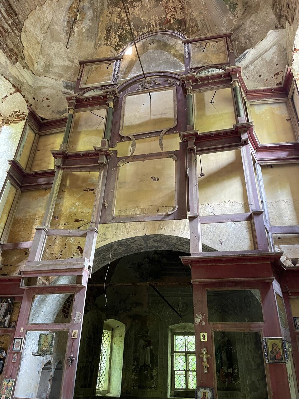 В церкви сохранился каркас трехъярусного высокого иконостаса в стиле классицизма, который можно датировать 1830-ми гг. Несколько выступающая средняя часть состоит из трех осей; центральная, более широкая, отличается иной формой икон (квадратной, с закругленными углами). Ярусы разделены между собой раскрепованным антаблементом, опирающимся на высокие колонны коринфского ордера. На темно-бордовом фоне иконостаса выделялась позолоченная резьба, ныне почти полностью утраченная.