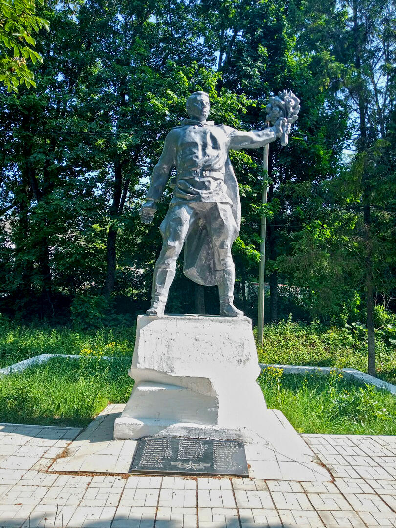 Вот такая хронология истории села. А совсем неприметно спрятались в сени деревьев два мемориала Великой Отечественной войне в компании двух памятников В.И.Ленину.