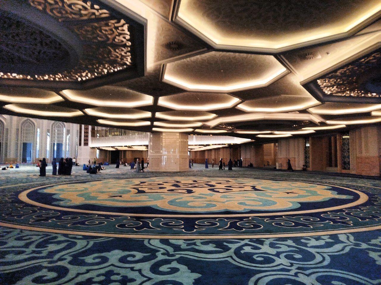 Здесь находятся самые большие ковры ручной работы в мире. Полностью покрыты коврами большой зал и женская молитвенная зона. Их площадь — 15,5 кв. м. Изготовили ковровое покрытие для мечети новозеландские мастера. Как и все элементы интерьера храма, ковёр украшен казахскими орнаментами. А медальон ковра в центральном зале в диаметре достигает 70 м.