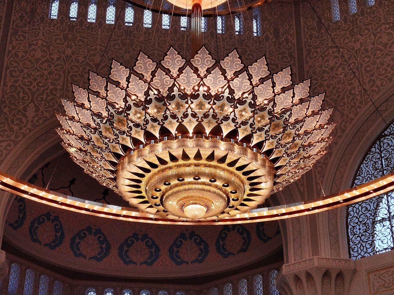 В главном зале находится одна из самых больших люстр в мире. Её диаметр составляет 27 м. К примеру, люстра мечети шейха Зайда в Абу-Даби в диаметре всего 12 м. Также люстра мечети Астаны отличается изящностью: она представляет собой конструкцию из позолоченных разноразмерных поясов с хрустальными элементами (всего было использовано 1,36 млн кристаллов семи цветов).