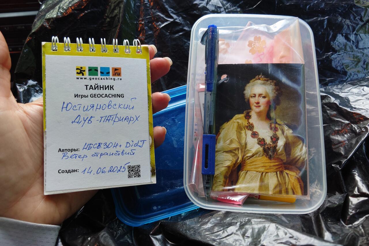 Когда мы его увидели - обалдели, конечно! Стоишь рядом и понимаешь, мощь! Могучий исполин, особенно на контрасте с окружающими деревьями, и даже его братьями-дубами. Пожалуй, это второй такой дуб, встреченый в наших путешествиях, древо побольше мы видели только в Южной Осетии на тайнике 1800-летний тис, тот дуб автор как раз и принял за тис, который отайничал, но это совсем другая история😁