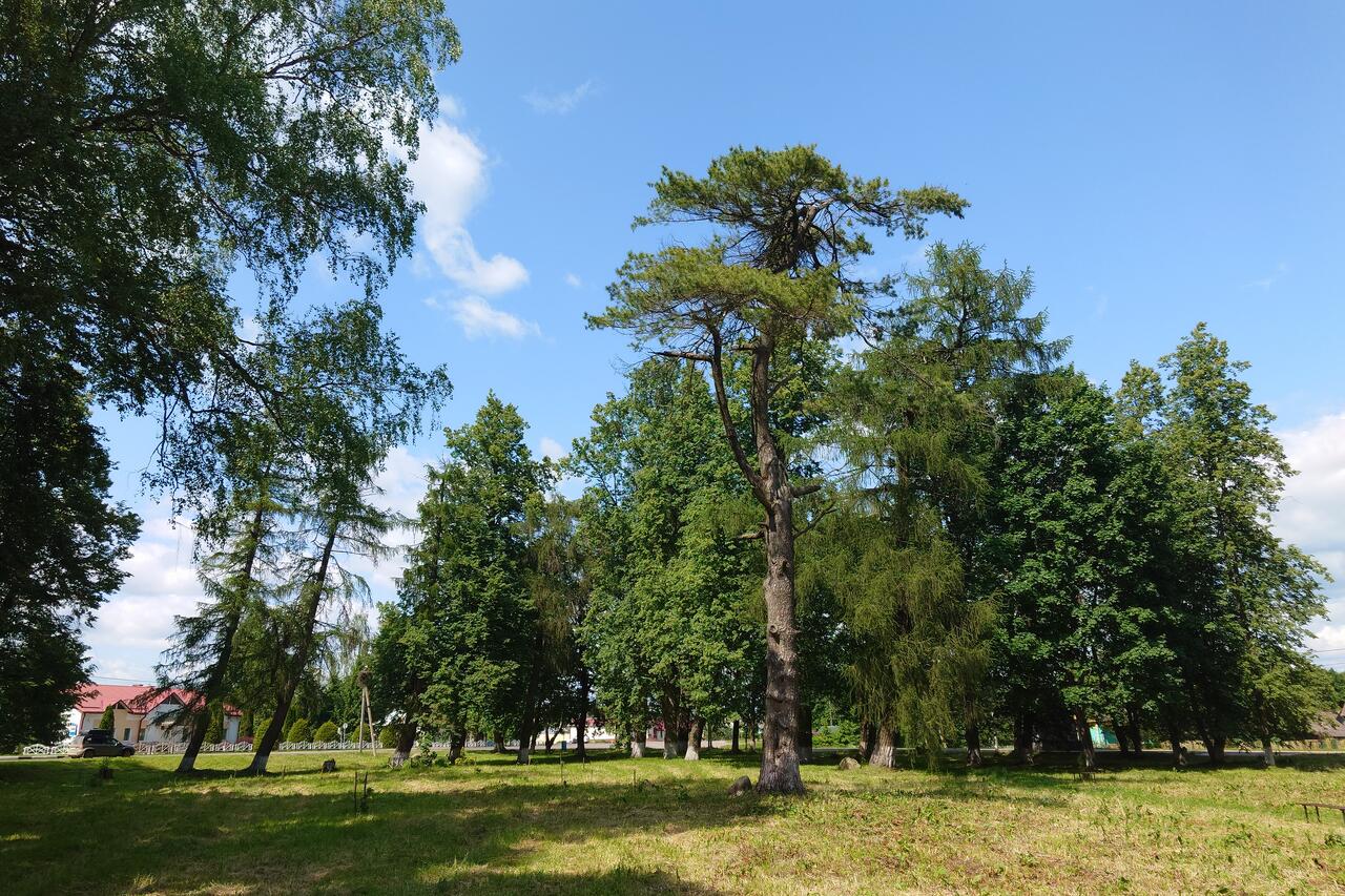и интродуценты: сосна веймутова (1), лиственница сибирская (7), тополь (2).