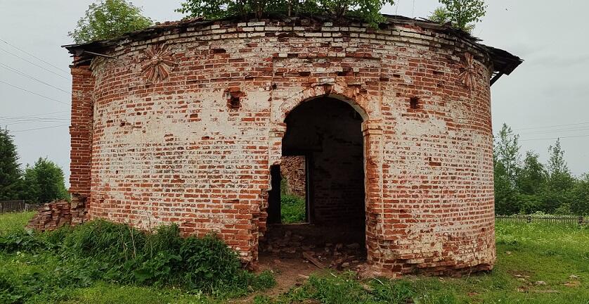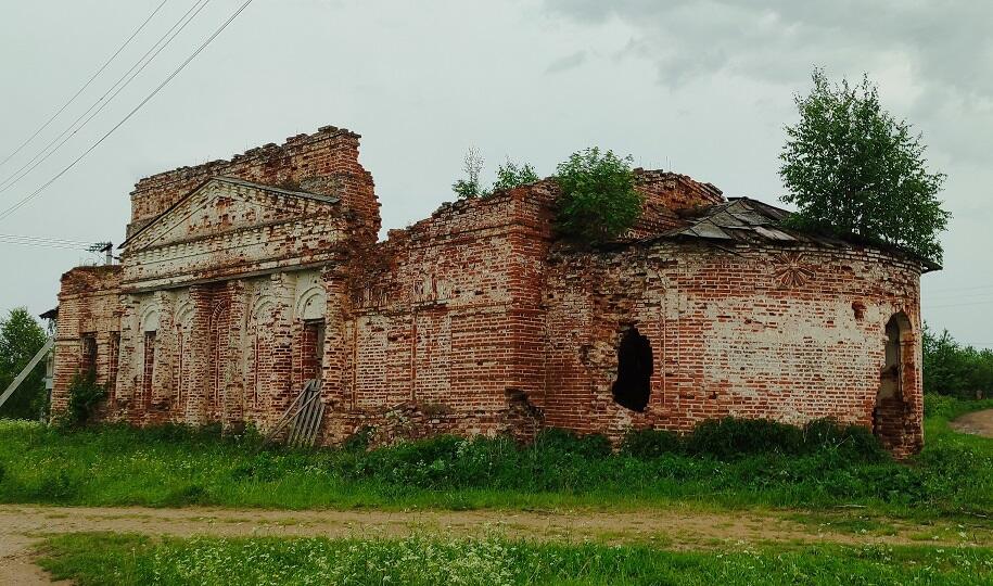 Введенская церковь была построена в 1840-1844 годах в стиле классицизма, с симметричными трапезной и апсидой, прежде увенчанная высоким куполом, который давно обвалился внутрь основного объёма. Реставрация такого сооружения увядшему селу не по силам, потому рядом возведена в 2015 году небольшая деревянная Ильинская церковь. Она стоит на месте снесенного второго каменного храма – тоже Ильинского.