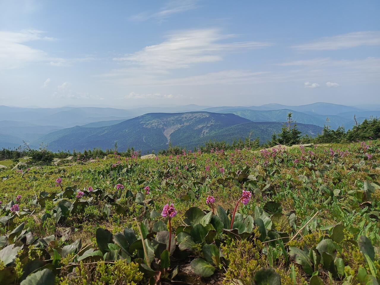 Долина тысячи ручьëв - так называется это место в верховьях Амзаса на одном из склонов Среднего зуба. Нетрудно догадаться откуда взялось такое название. Эта местность сильно заболочена и в буквальном смысле образует "тысячи ручьёв". На карте есть обозначение тропы, но по факту ее как таковой нет. Ведь, как известно, на болоте не остается следов. Но люди тут ходят. Тем более, что это самый короткий путь на озеро Выпускников. Но летом трава достигает огромных размеров и идти становится тяжело...