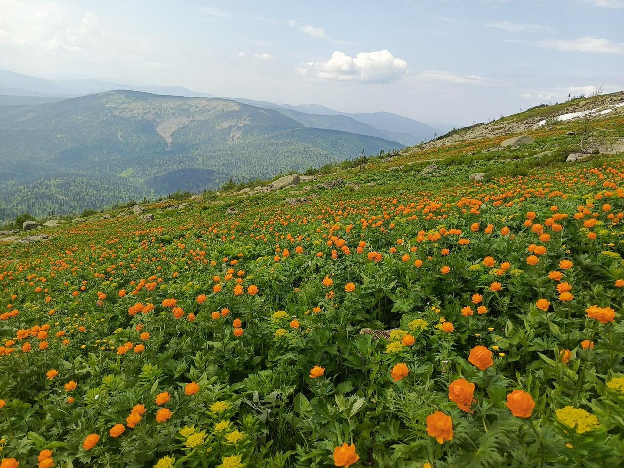 А вот гулять здесь в начале июня - одно удовольствие. Снега уже нет, трава еще невысокая. А цветение крупных огоньков потрясает своей красотой!
