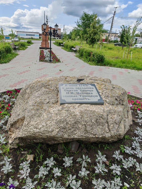 В выборе места для камня сомнений не было: как и предлагал художник, камень появится у Свято-Троицкого, или, как его еще называют сами жители Троицка, Уйского, собора, который был основан практически одновременно с самим городом. Храм находится по адресу: ул. Красногвардейская, 1. Именно отсюда когда-то начинался Троицк.