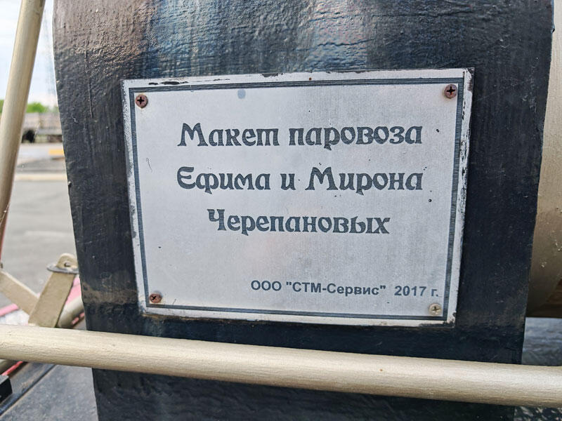 Макет паровоза Черепановых представляет собой уменьшенную копию оригинального устройства, выполненную с высокой степенью исторической достоверности. Его установка была инициирована компанией ООО "СТМ-сервис" в рамках проекта популяризации истории отечественного железнодорожного транспорта и сохранения памяти о выдающихся российских инженерах-первопроходцах.