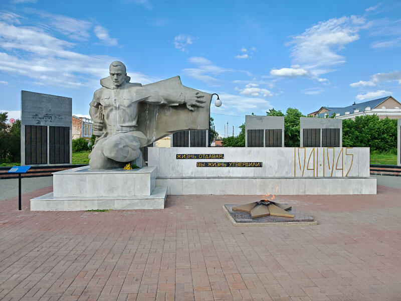 В 1970 г., в канун 25-летия Победы, горком КПСС и горисполком приняли решение об увековечивании памяти павших. Памятник торжественно открыт 5 ноября 1971 г. Авторы — скульпторы Е. И. Макаров, В. П. Бокарев.