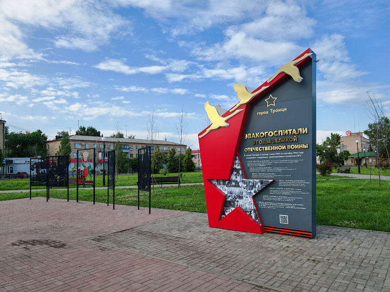 Каслинский завод архитектурно-художественного литья отлил памятник «Матерям и вдовам погибших защитников Отечества» и 10 монументальных бюстов — скульптуры установлены в сквере Памяти участников Великой Отечественной войны в Троицке. Аллею Славы образовали 10 монументальных бюстов Героев Советского Союза и полных кавалеров ордена Славы. Бюсты выполнил Алексей Чебаненко — скульптор студии военных художников им. М. В. Грекова (Москва).