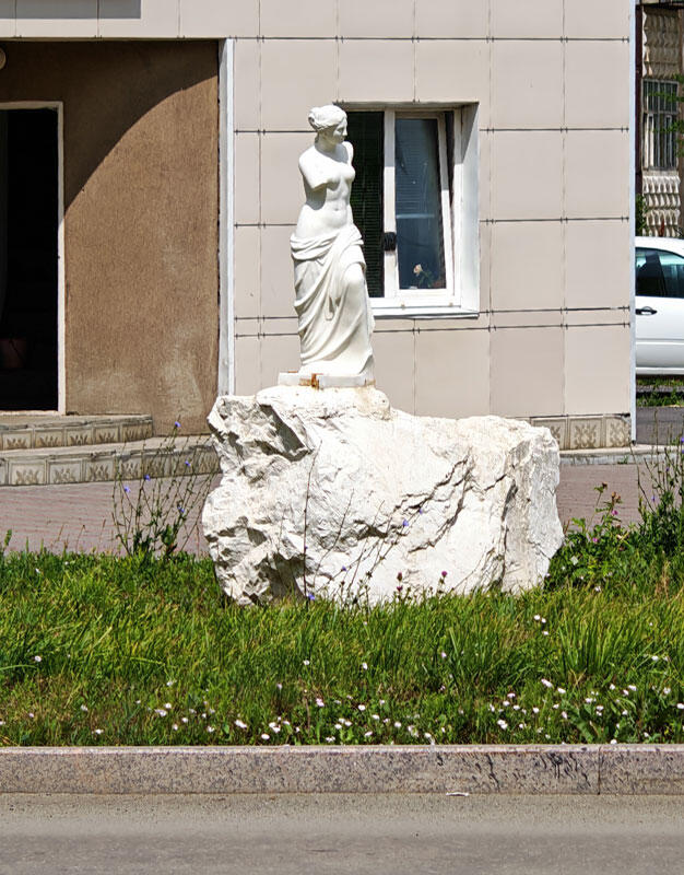 Своеобразный вызов известным городам мира в Южноуральске дать не побоялись. Взяли и установили на небольшой площадке, возле стоянки такси на улице Спортивной, не абы кого, а копию самой Венеры Милосской.