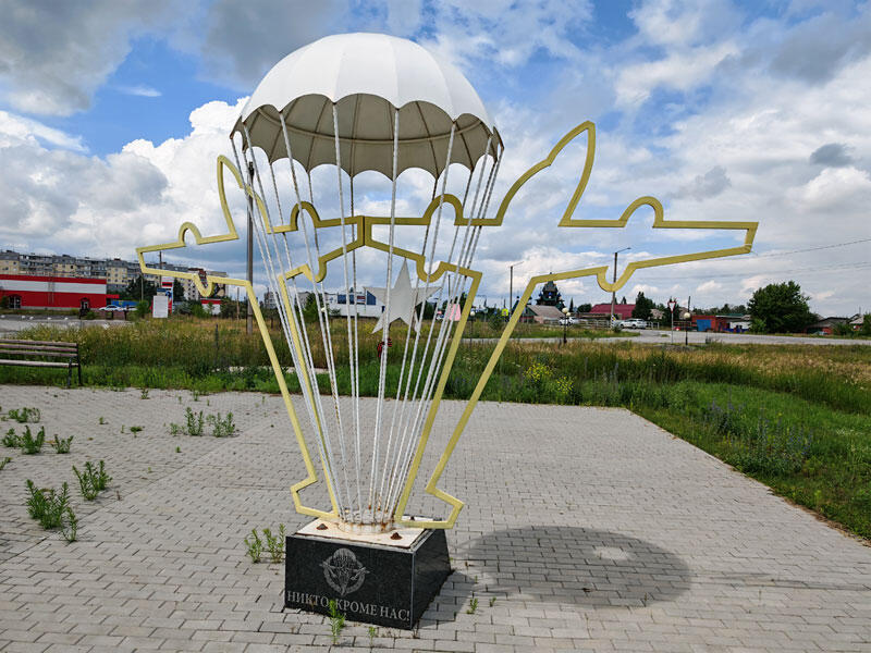 Под общие аплодисменты с памятника стянули парашютную ткань. Сам памятный знак получился символичным и красивым — парашют с двумя взмывающими вверх самолетами. К памятнику тут же заступили на караул воспитанники военно-патриотического клуба «Десантник».