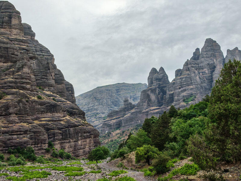 В скалах Чилдухтарон есть ущелье по дну которого течет речка Иокуньж. Это ущелье "разрезает" Чилдухтарон и служит основой для древней дороги. По ущелью сейчас можно немного проехать на внедорожнике, дальше идет только тропа по которой местные жители идут пешком или едут на ослах. К скалам можно подняться по руслу ручья. Местность очень живописная. На прогулку можно потратить целый день.